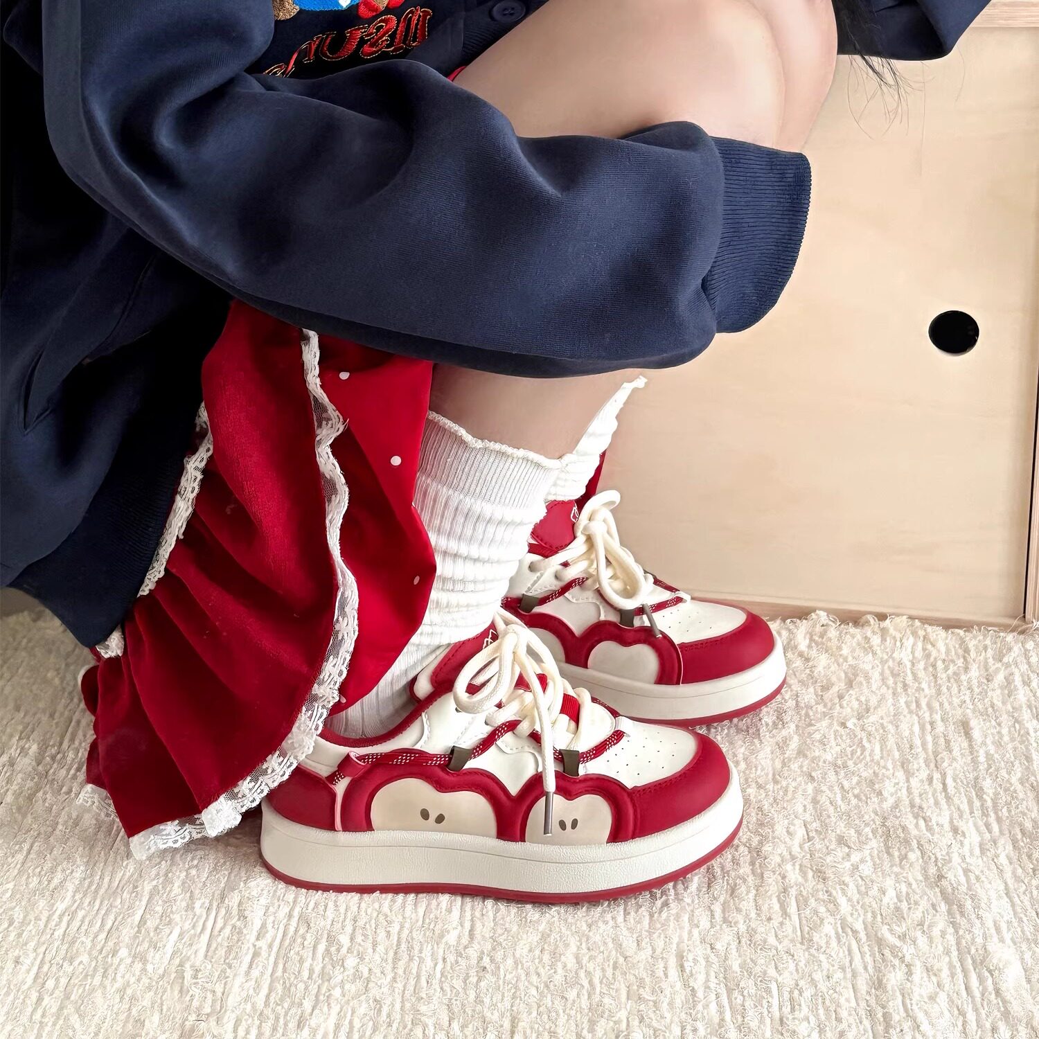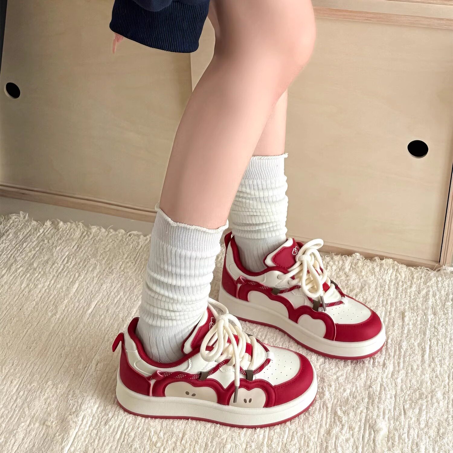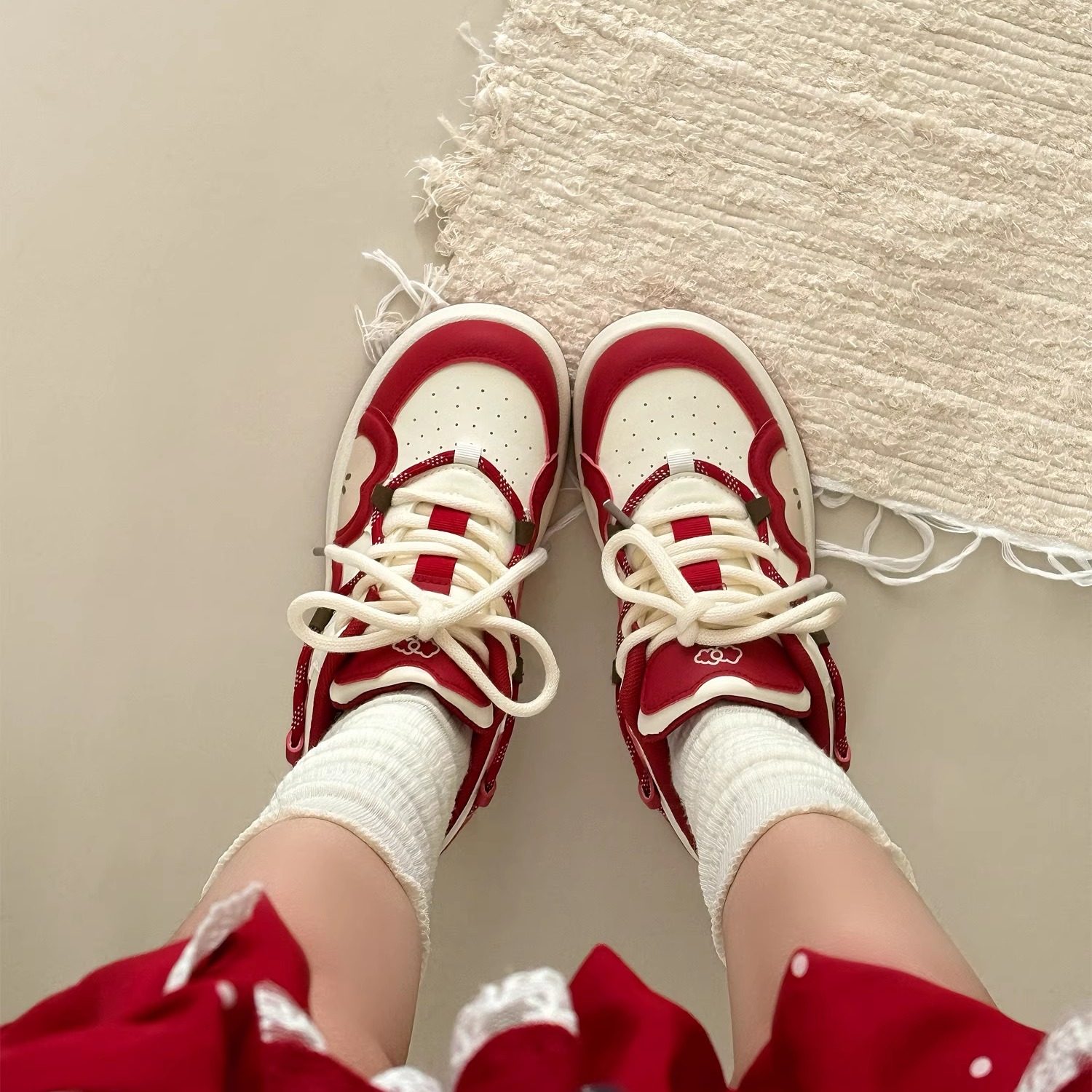 📚 荔枝公园原创红色苹果板鞋子女2025新款厚底小白鞋防滑面包鞋潮鞋