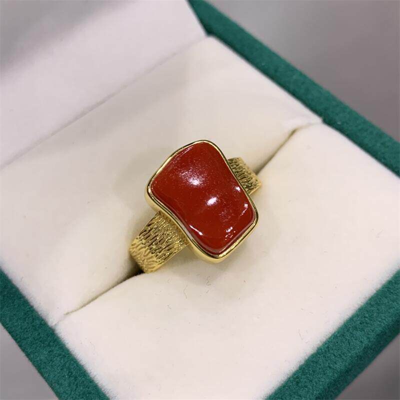 📚 天然日本阿卡珊瑚s925银戒指有机宝石沙丁牛血红深海红科西嘉颂
