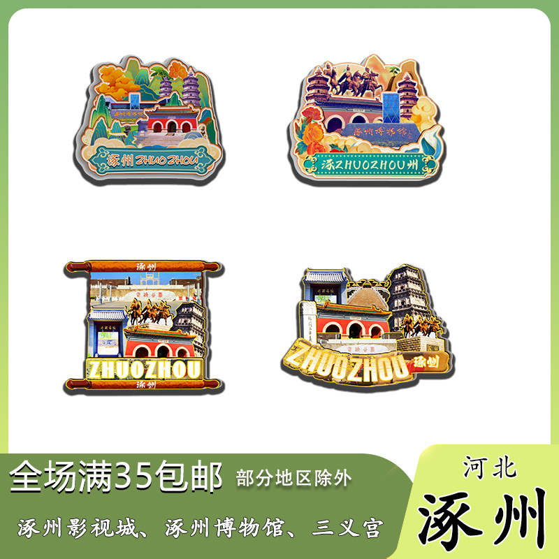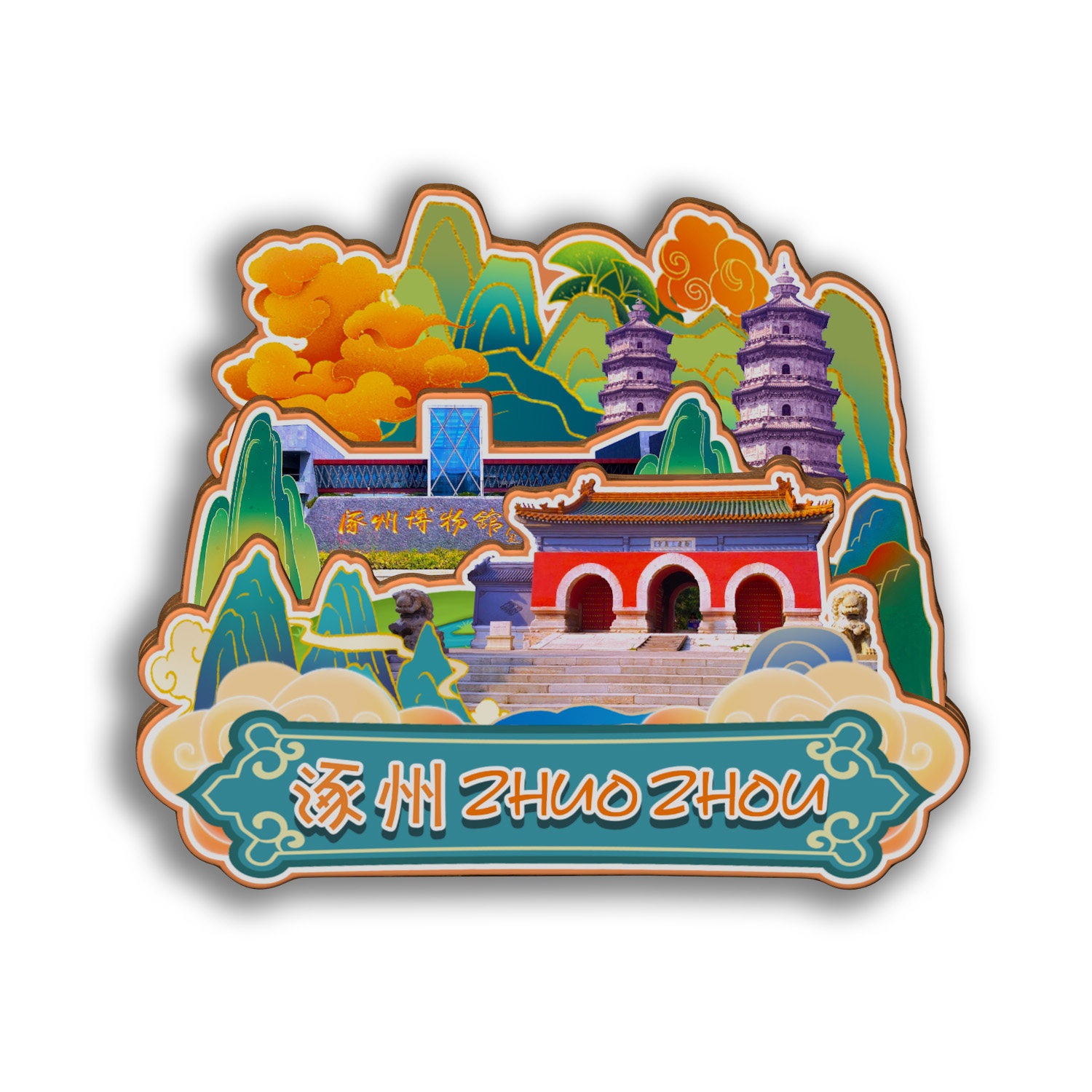 📚 河北涿州影视城三义宫辽代双塔永济桥木质冰箱贴旅游纪念品伴手礼