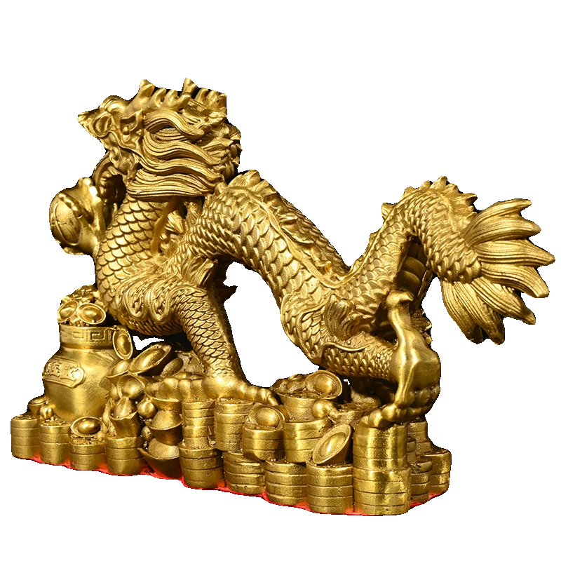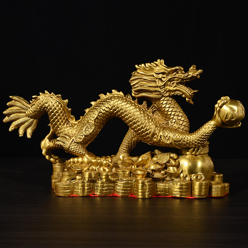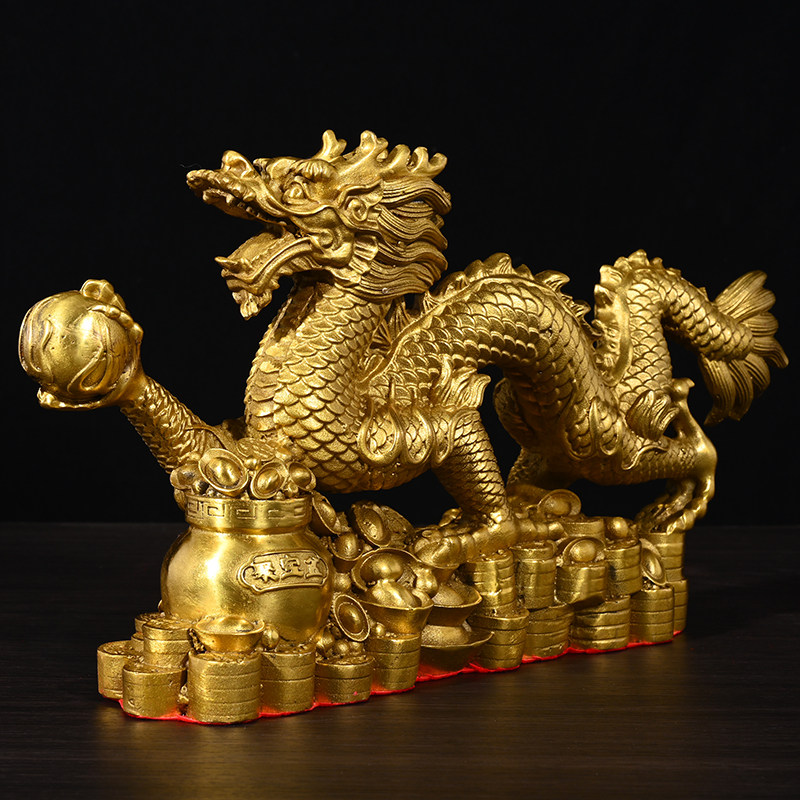 📚 小号纯铜龙大号聚宝盆龙青龙工艺品飞龙蟠龙办公室摆件长30-50cm