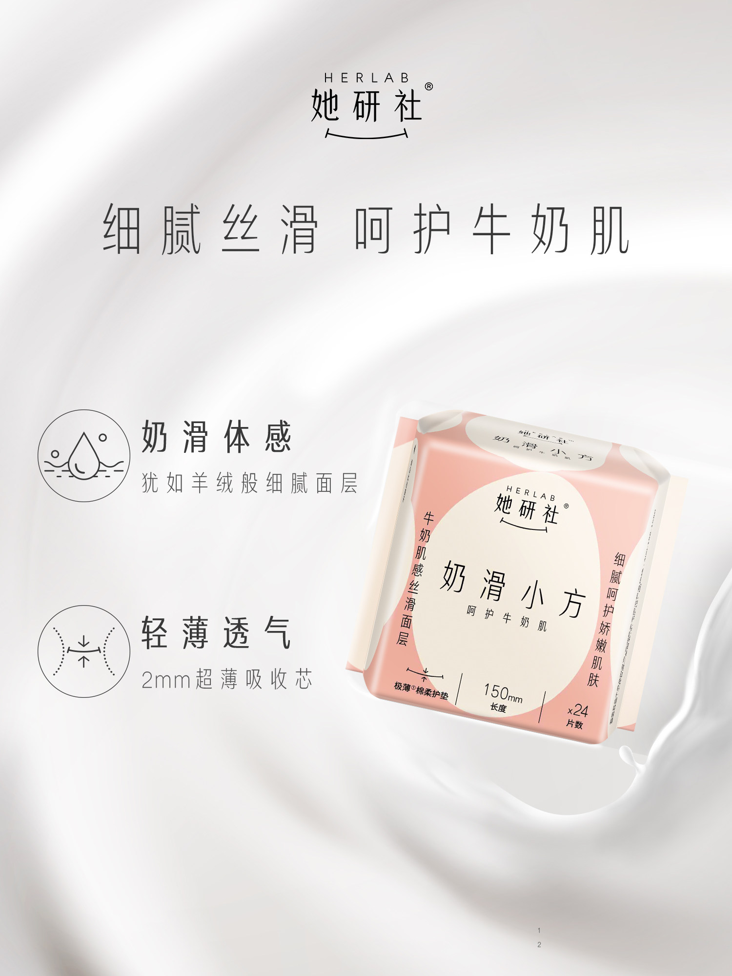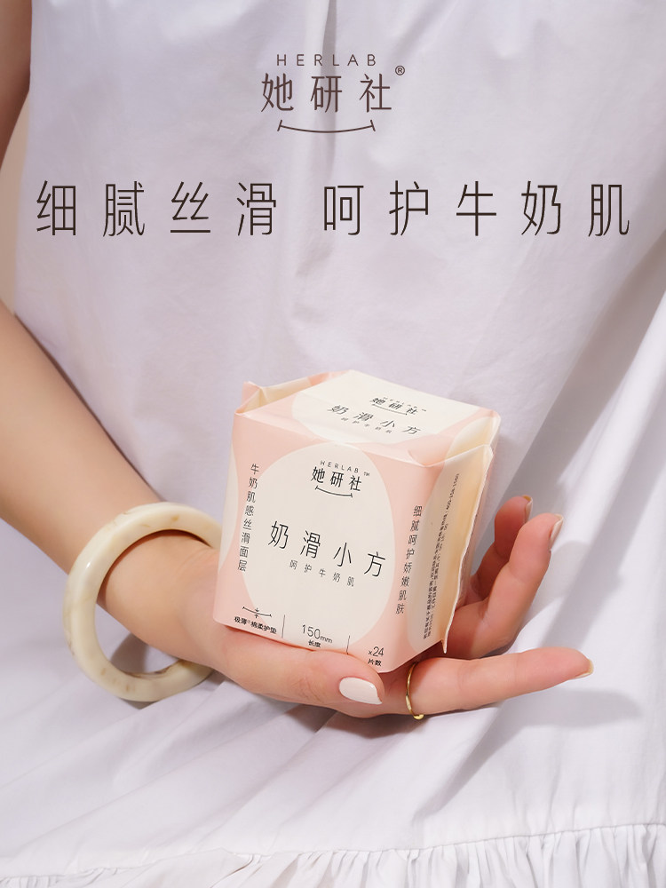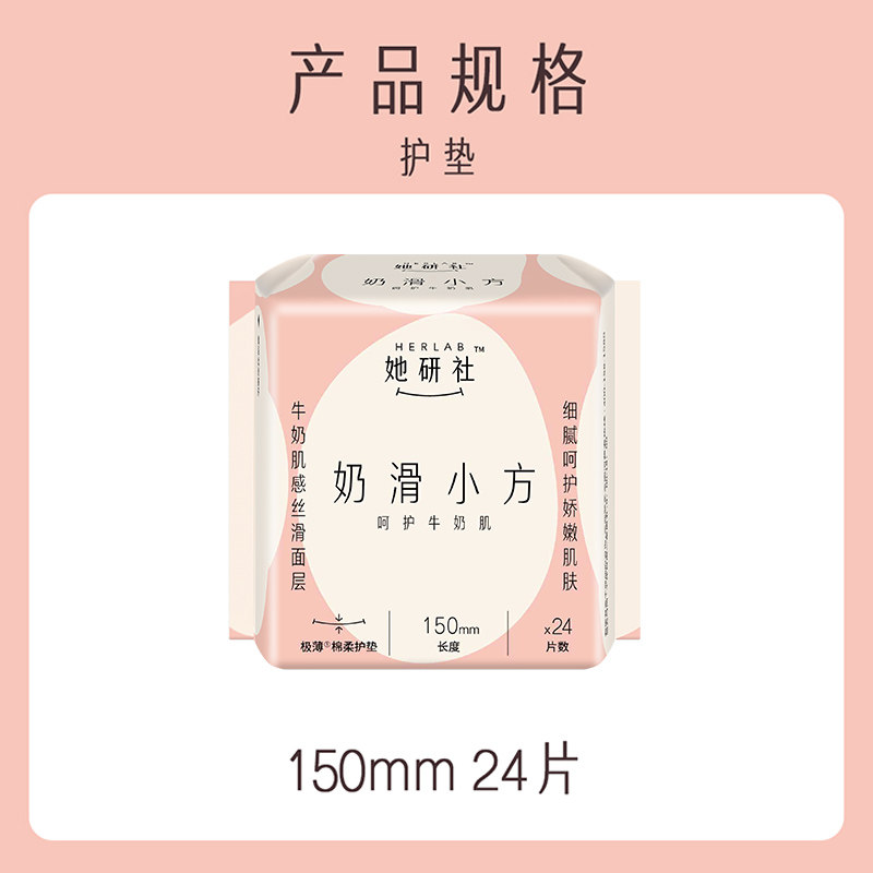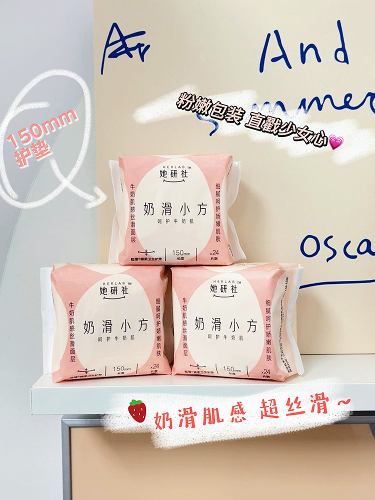 📚 她研社奶滑小方护垫150卫生巾190带护翼迷你巾日用姨妈巾超薄护垫
