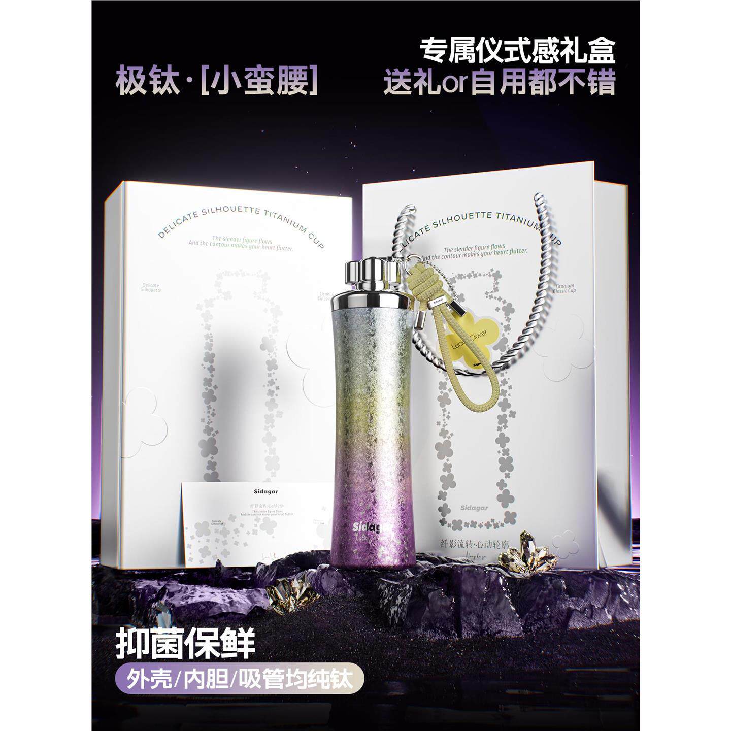 📚 世大家钛杯保温杯纯钛吸管女生高颜值便携车载生日礼物情侣水杯子