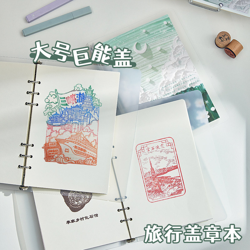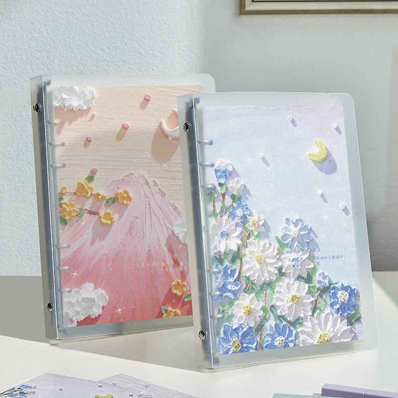 📚 b5手绘油画活页本可拆卸外壳A5空白盖章本高颜值笔记本本子空白手账本简约ins风印章加厚学生学习考研记事本