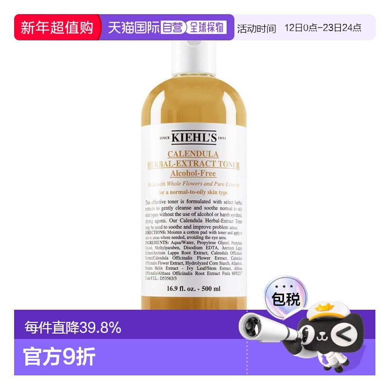 📚 KIEHLS科颜氏金盏花植物精华爽肤水水润保湿补水化妆水500ml正品