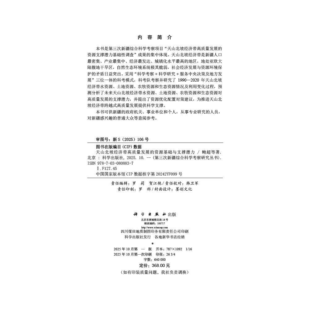 📚 天山北坡经济带高质量发展的资源基础及支撑潜力 科学出版社9787030808837