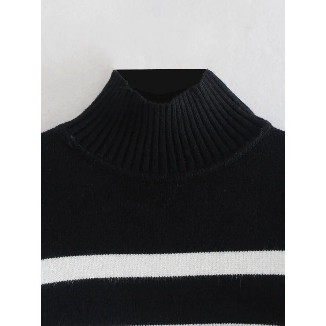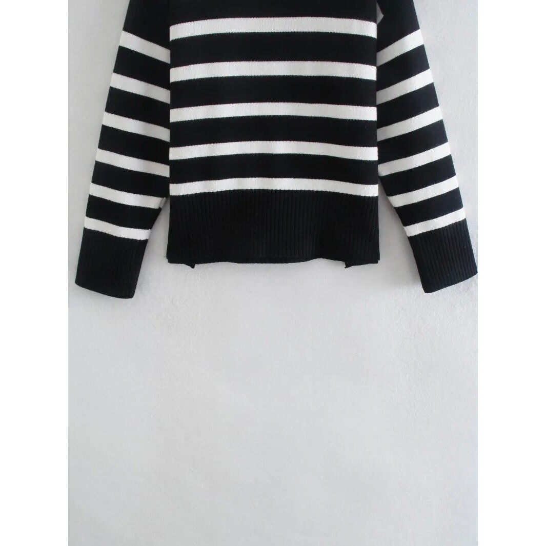 📚 Winter Black And White Stripe Sweater Women Streetwear Loose
