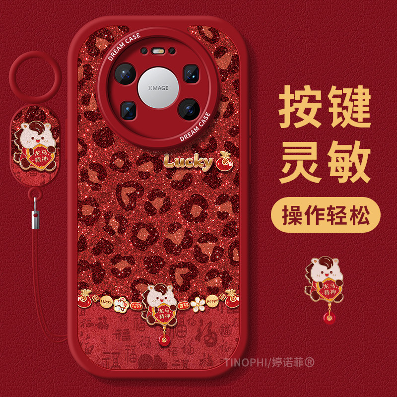 📚 适用华为mate80promax手机壳女款mate70保护套全包60pro+硅胶50防摔40e磨砂卡通m30优享版rs豹纹红色20软外壳