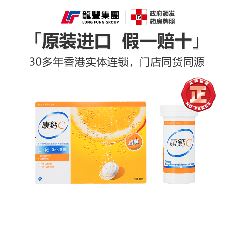 📚 香港版 康钙C维生素c泡腾片橙味30粒维C提高免疫力补钙强健骨骼