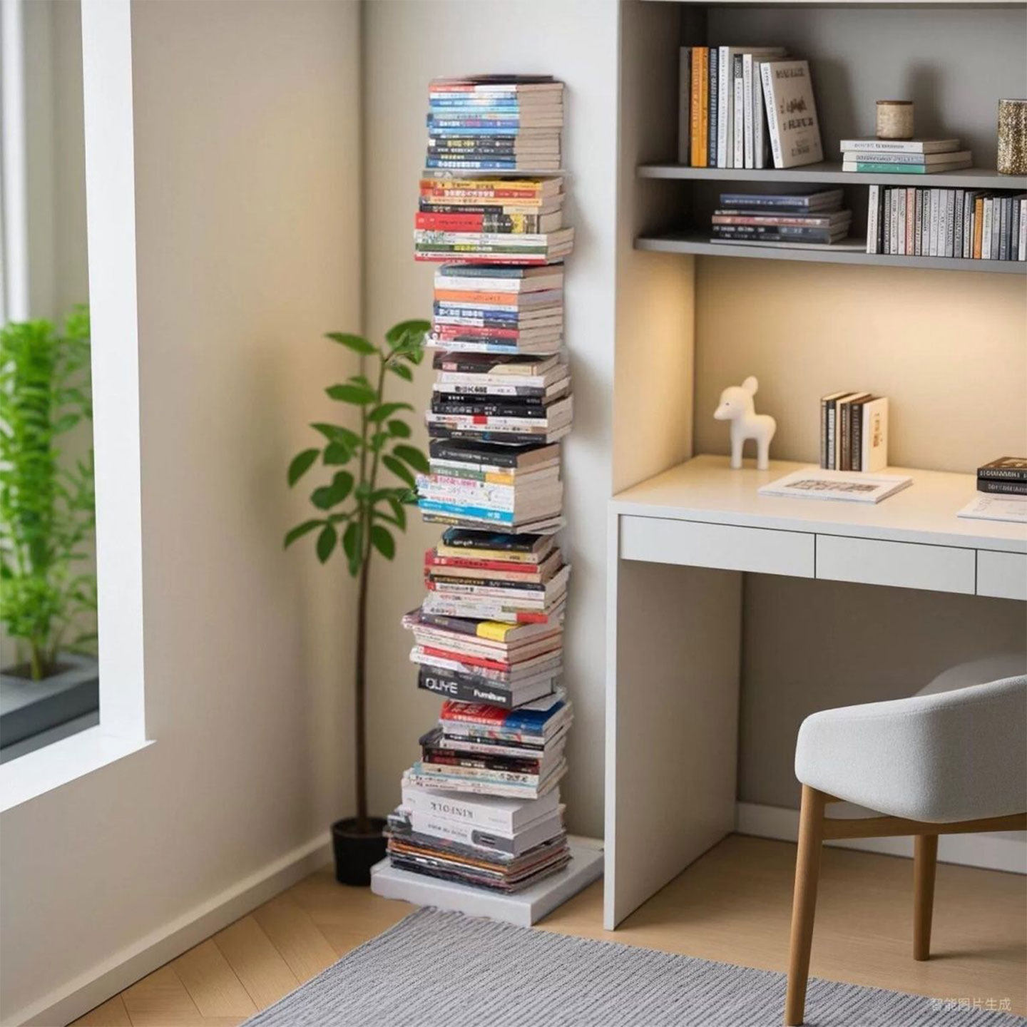 📚 隐形书架落地置物架铁艺简易立式书柜客厅角落一体靠墙书本收纳架