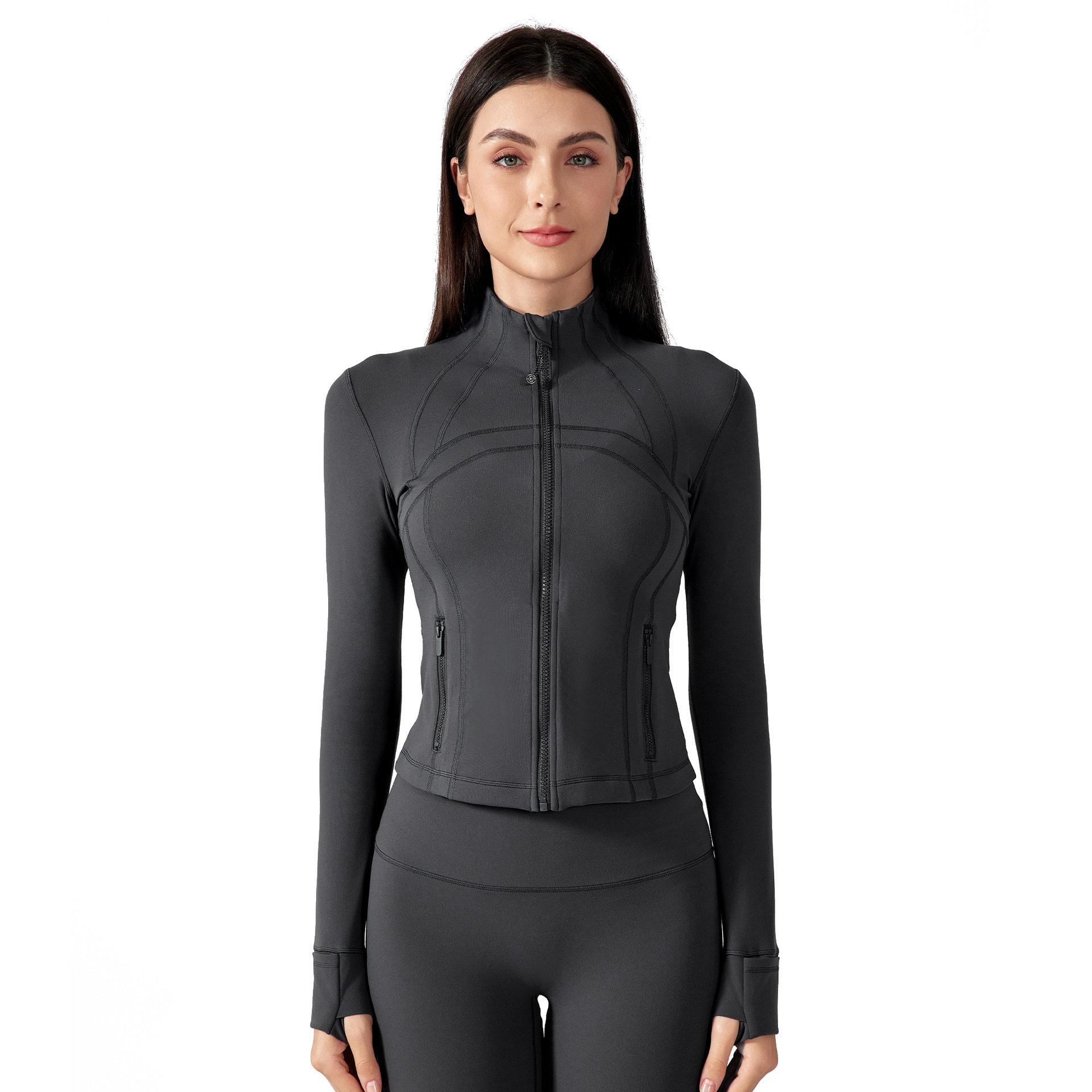 📚 define瑜伽运动夹克外套女短款修身拉链长袖上衣跑步运动健身服