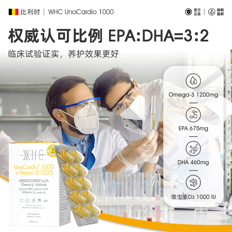 📚 WHC小千金深海鱼油rTG结构95%高纯度Omega3维生素D3成人60粒儿童