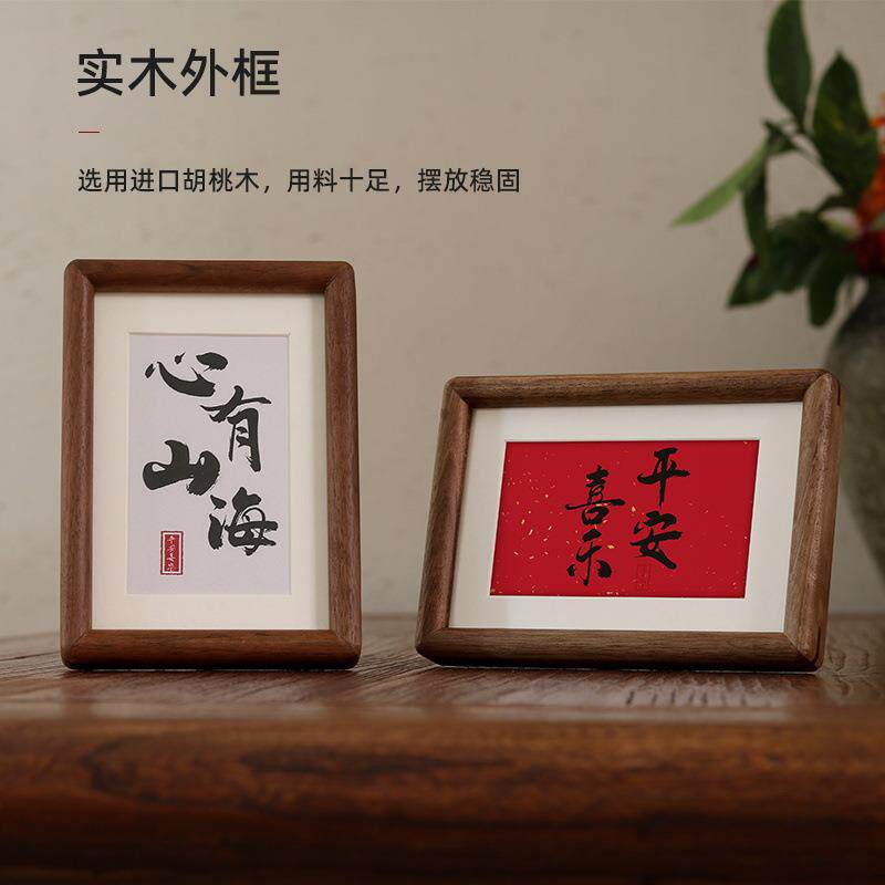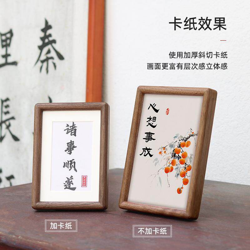 📚 实木榫卯相框6寸7寸带卡纸照片装裱框摆台圆角相框画框黑胡桃