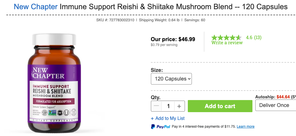 📚 New Chapter新章Immune免疫支持Reishi灵芝Shiitake菌菇混合活力