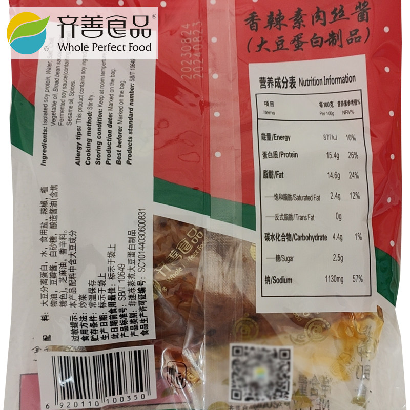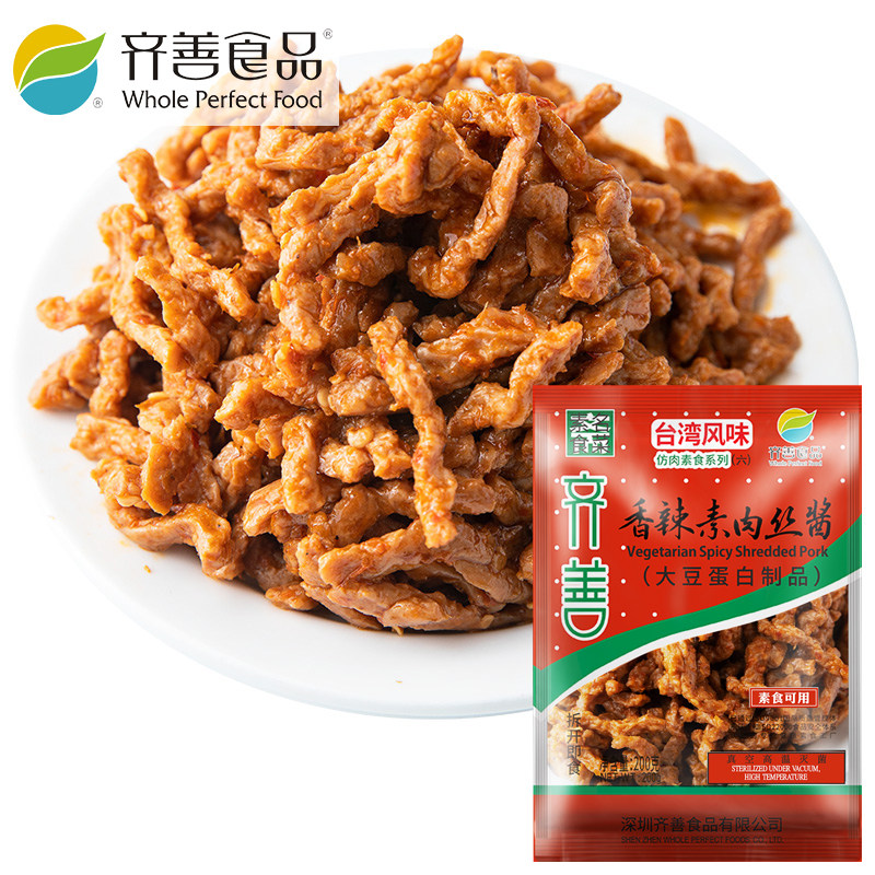 📚 正品齐善素食香辣素肉丝酱X5包佛家纯素肉即食大豆蛋白制品素斋菜