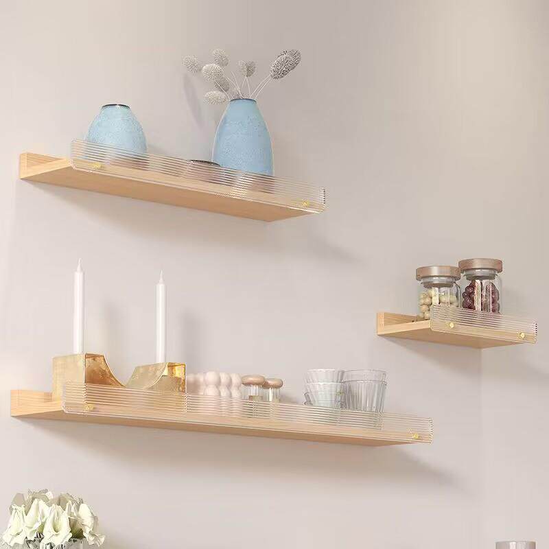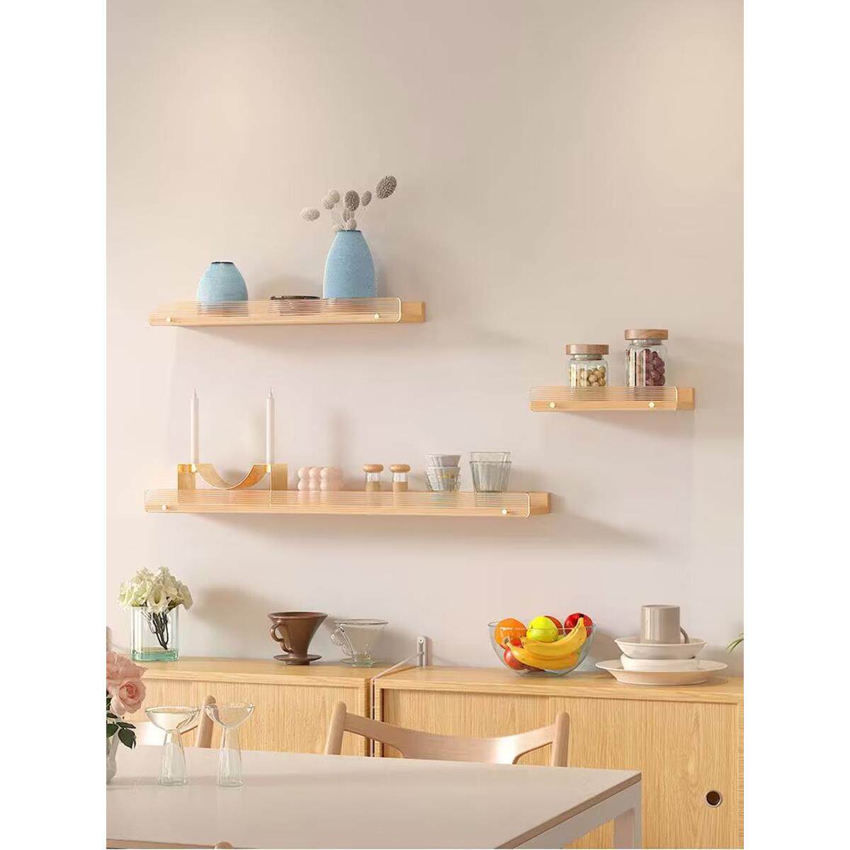 📚 ins亚力克墙上美甲置物架实木墙壁客厅书房展示架一字隔板免打孔