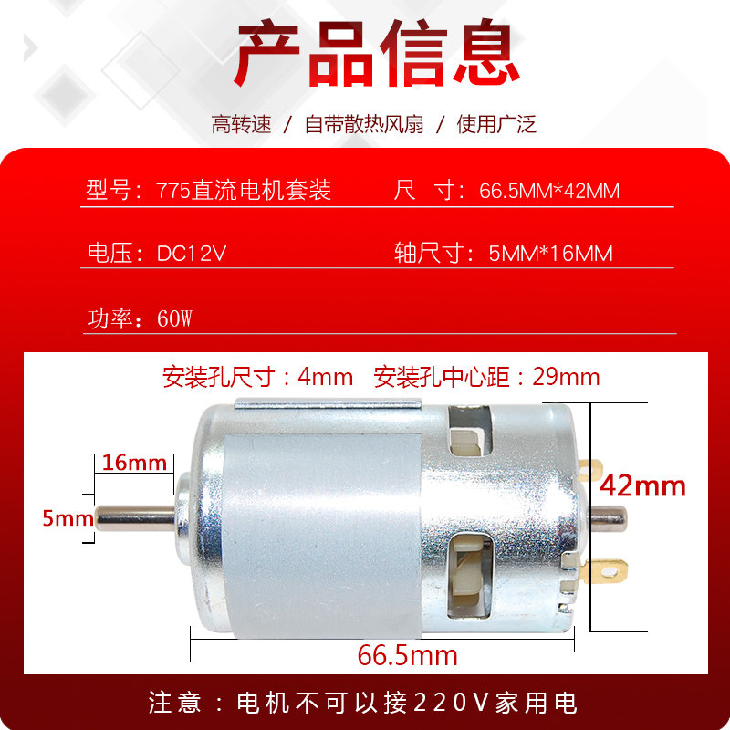 📚 775直流马达高速电机微型砂带抛光12V小马达DIY小型砂轮磨刀配件
