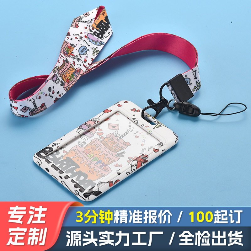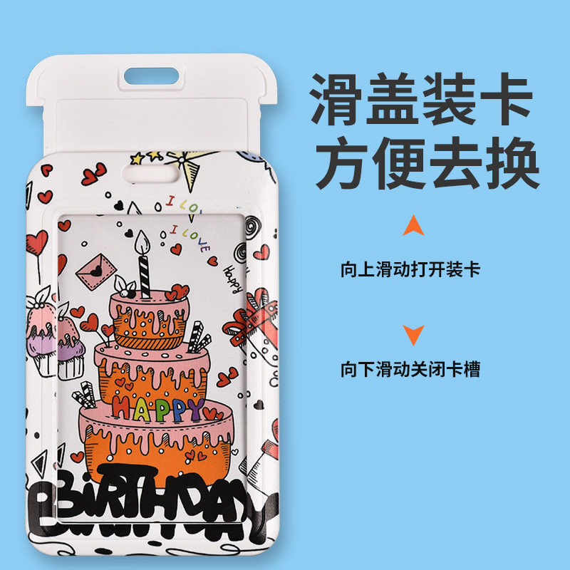 📚 推合滑盖中学生卡套带挂绳门禁卡定制 塑料防丢校园公交乘车卡套