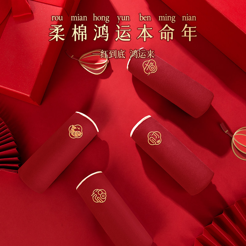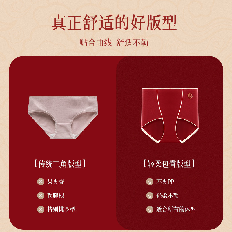 📚 古今本命年大红内裤女士纯棉高腰收腹2026马年鸿运女生款三角短裤