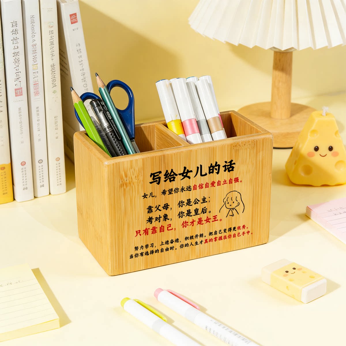 📚 笔筒学生桌面儿童男女孩大容量超大收纳盒创意定制生日礼物竹摆件