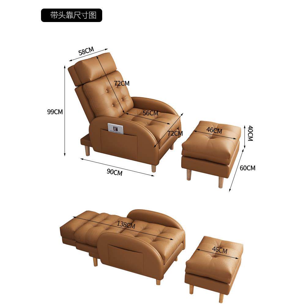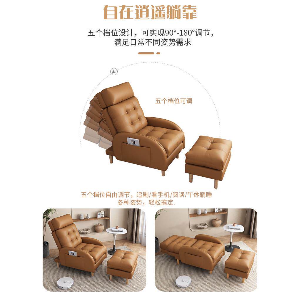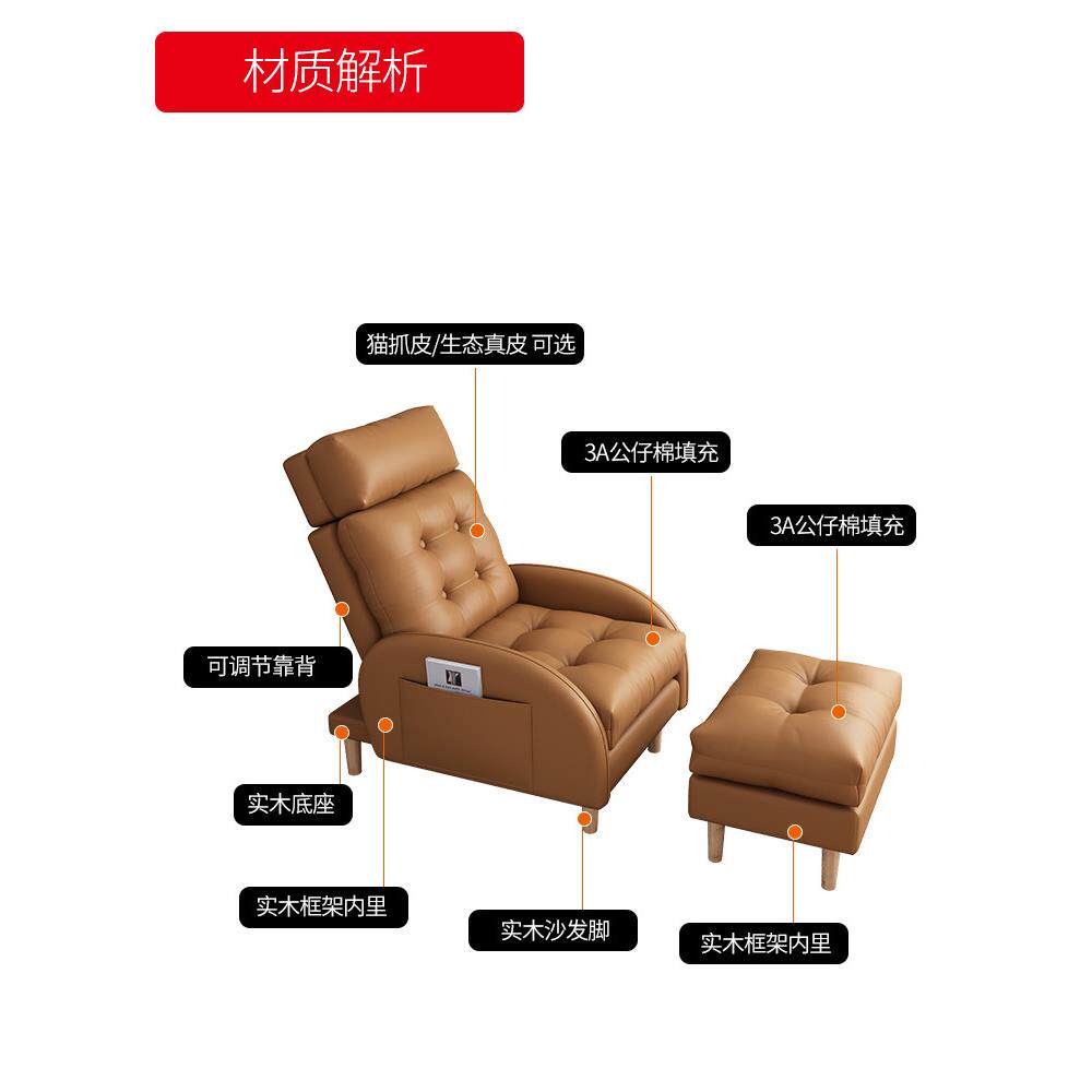 📚 猫抓皮懒人沙发网红小户型贵妃客厅阳台单人沙发卧室真皮折叠躺椅