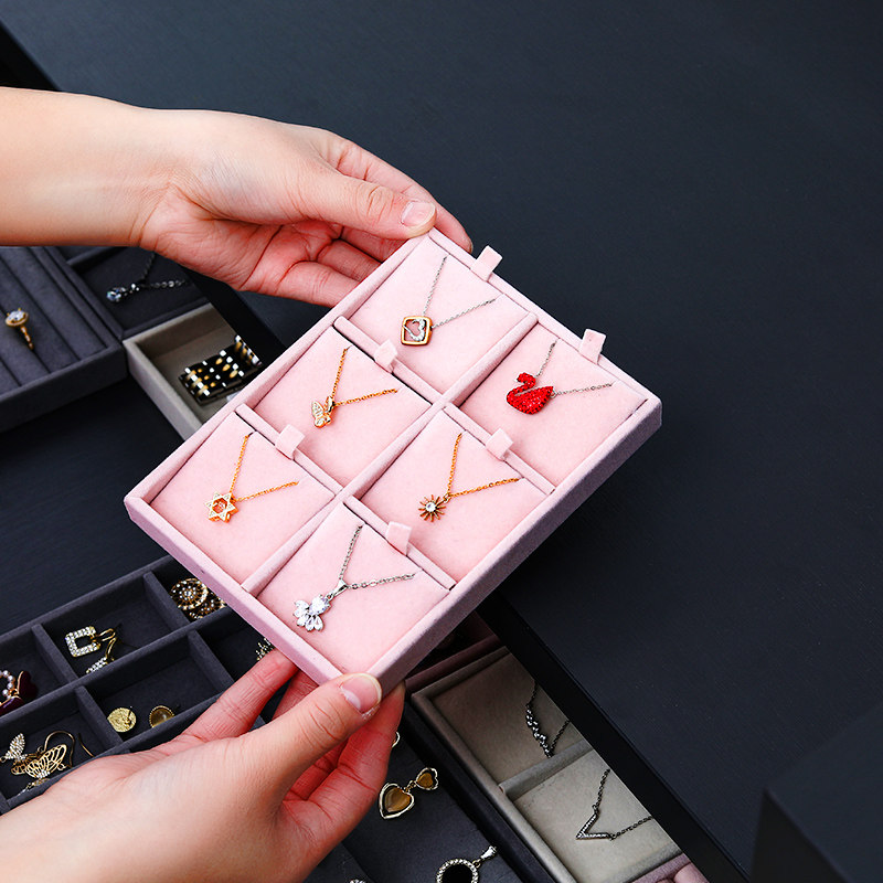 📚 绒布首饰盘饰品戒指耳环项链托盘家用抽屉柜内展示珠宝首饰收纳盒