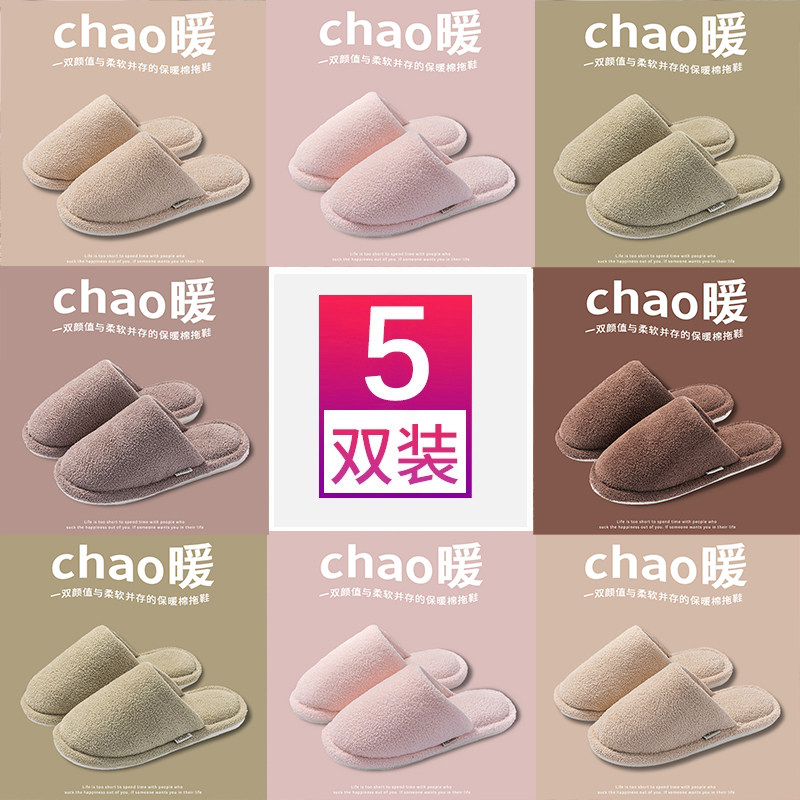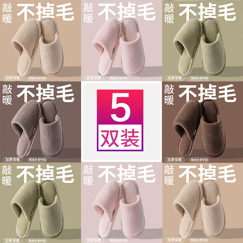 📚 5双棉拖鞋秋冬季居家居室内情侣男女待客保暖毛毛绒厚底拖鞋家用6
