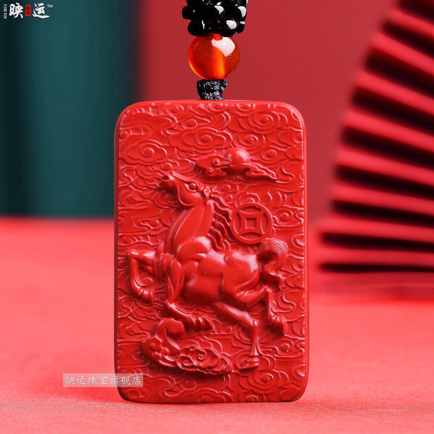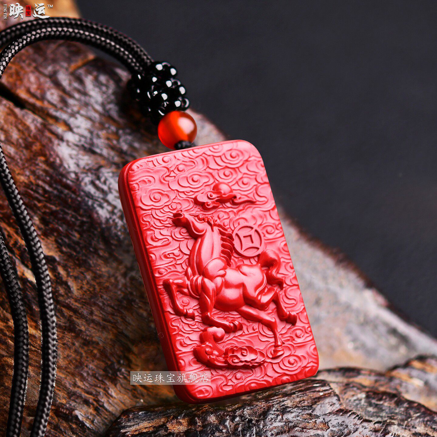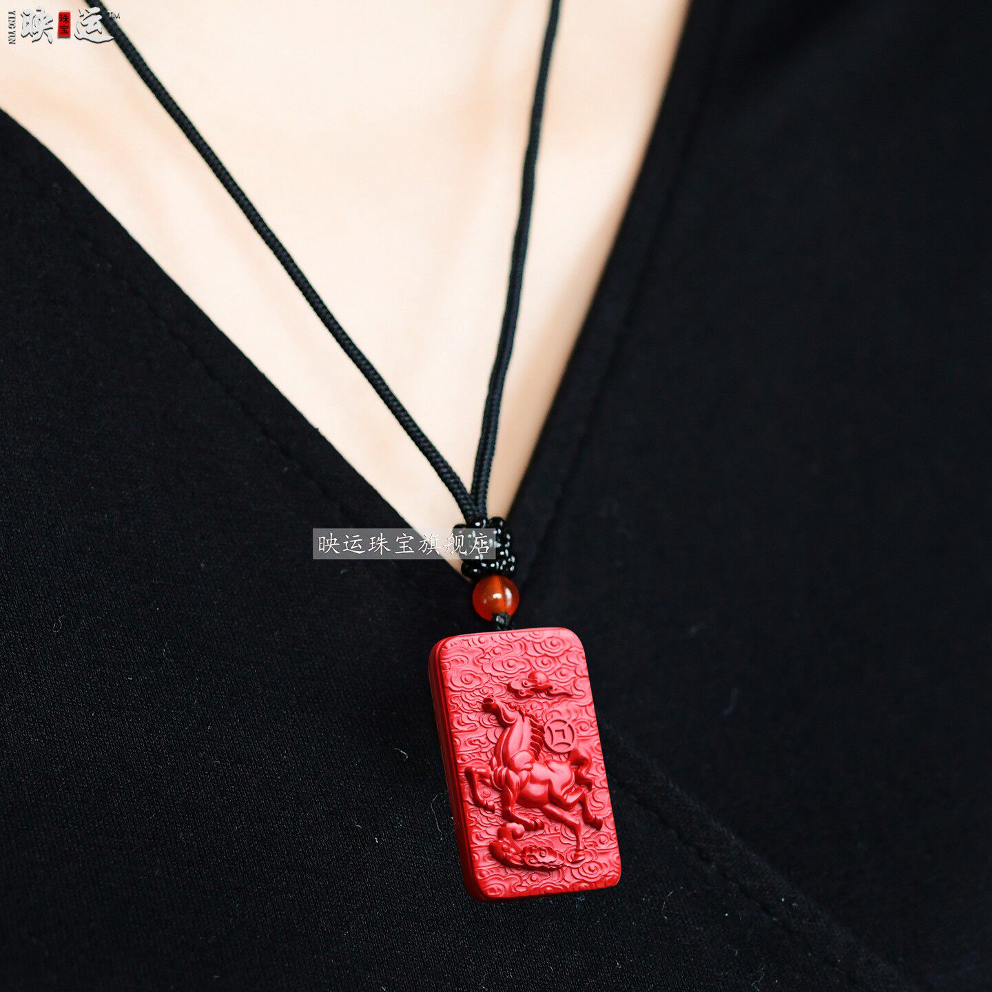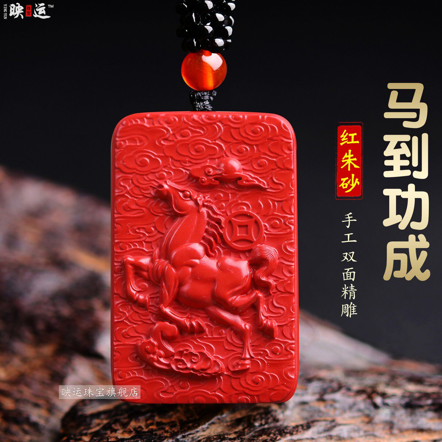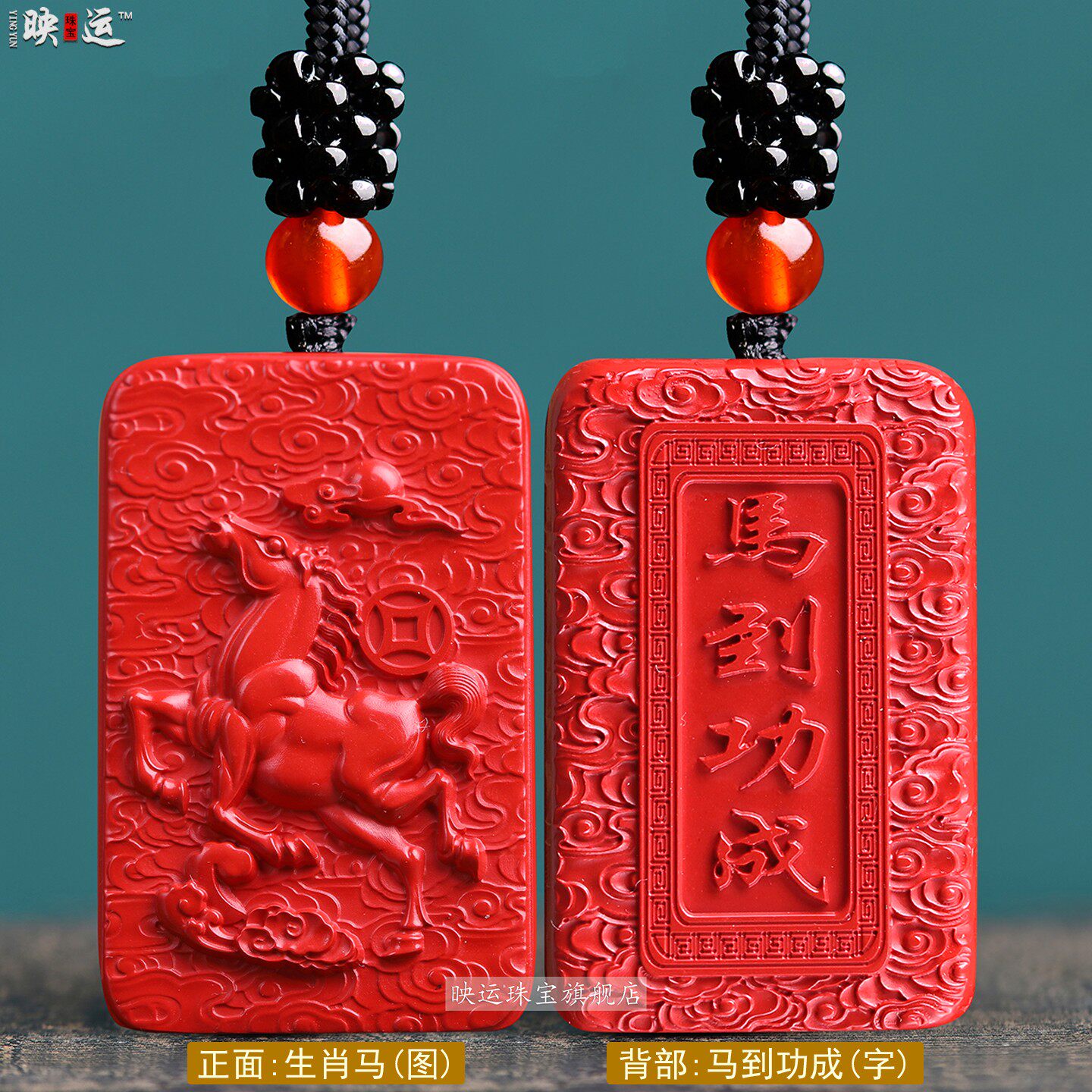 📚 2026本命年生肖马到功成无事牌马上有钱吊坠帝王红朱砂项链挂饰