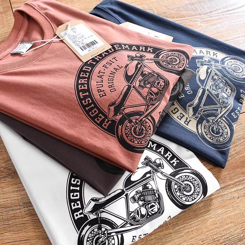 📚 HK公司单!摩托印花 水洗磨毛!春夏男士百搭印花短袖T恤打底衫潮