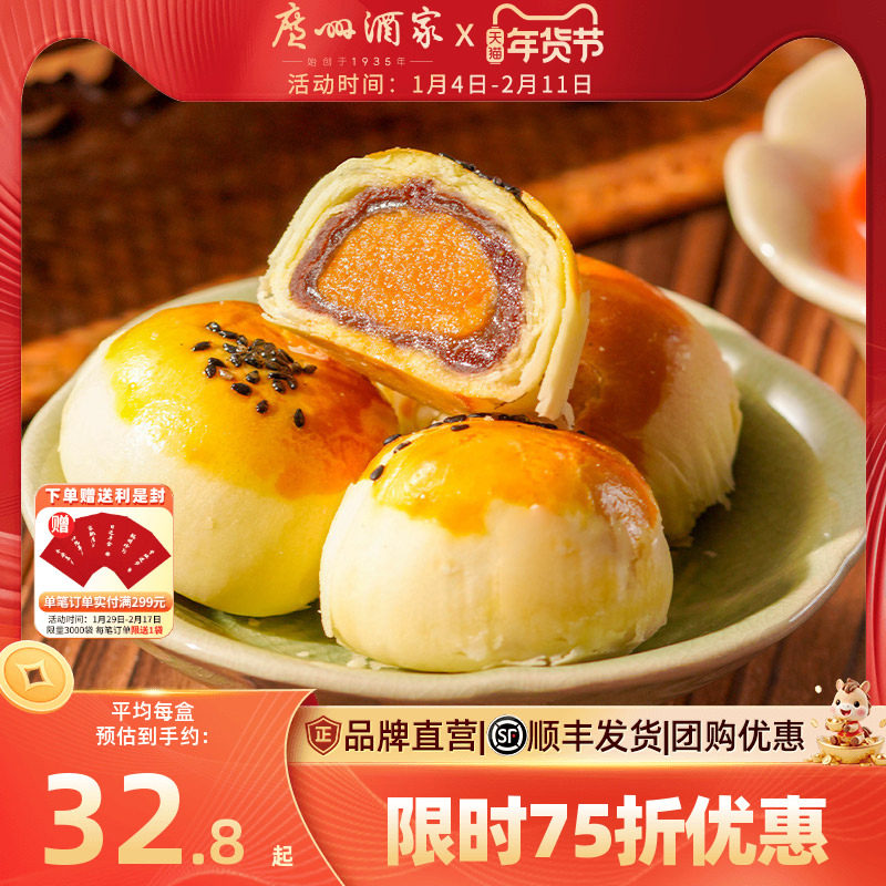 📚 广州酒家蛋黄酥红豆味低糖莲蓉糕点心下午茶休闲零食小吃送礼礼盒