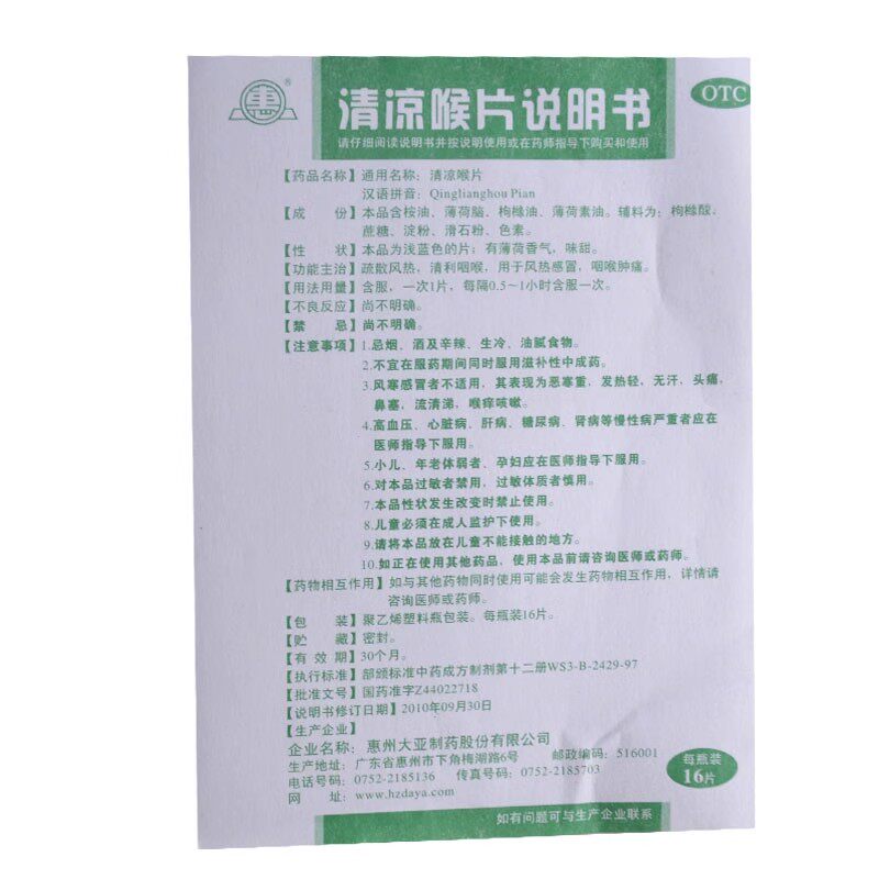 📚 包邮】惠 清凉喉片16片/瓶疏散风热清利咽喉风热感冒咽喉肿痛
