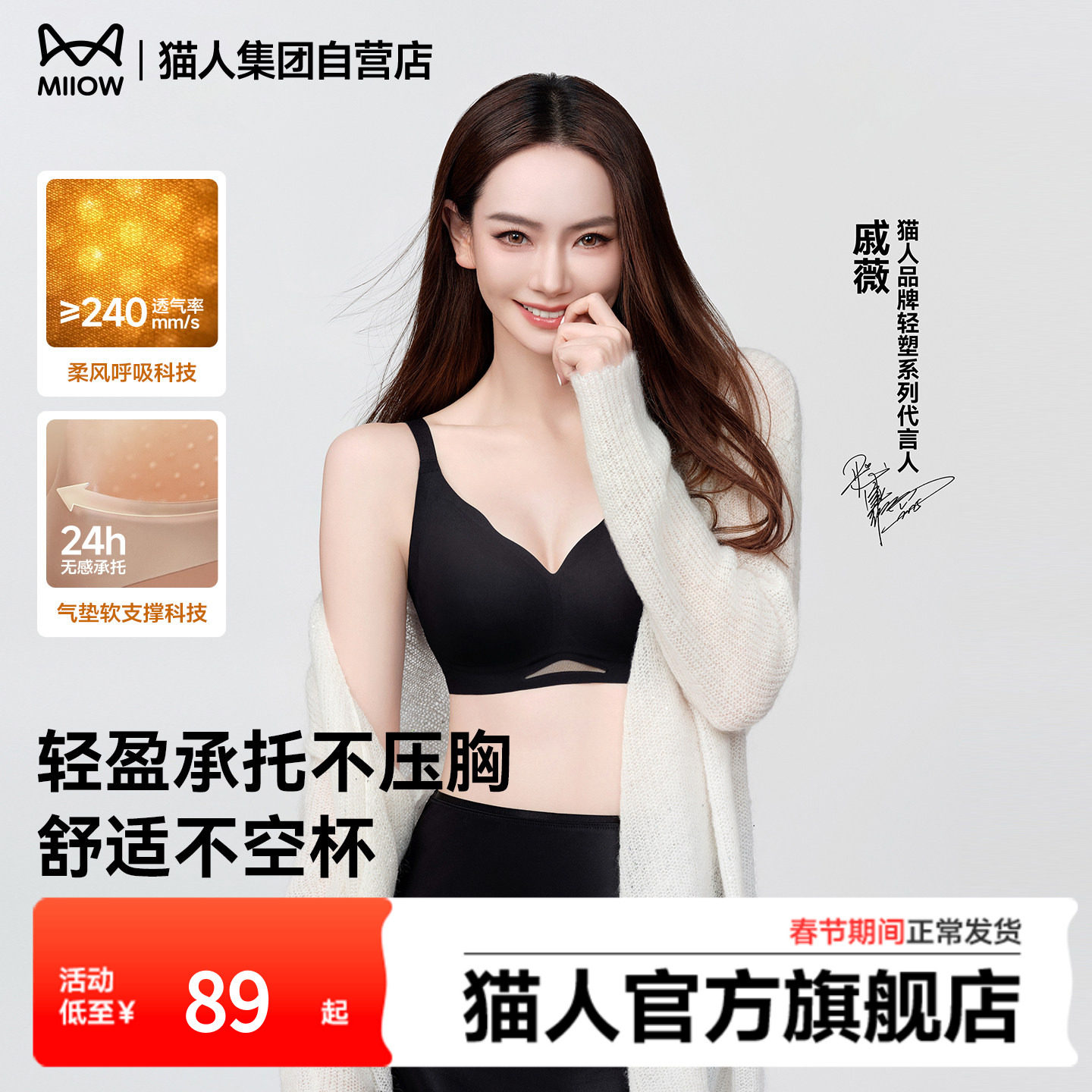 📚 【戚薇同款】猫人气垫杯无痕收副乳美背大胸显小聚拢文胸罩内衣女