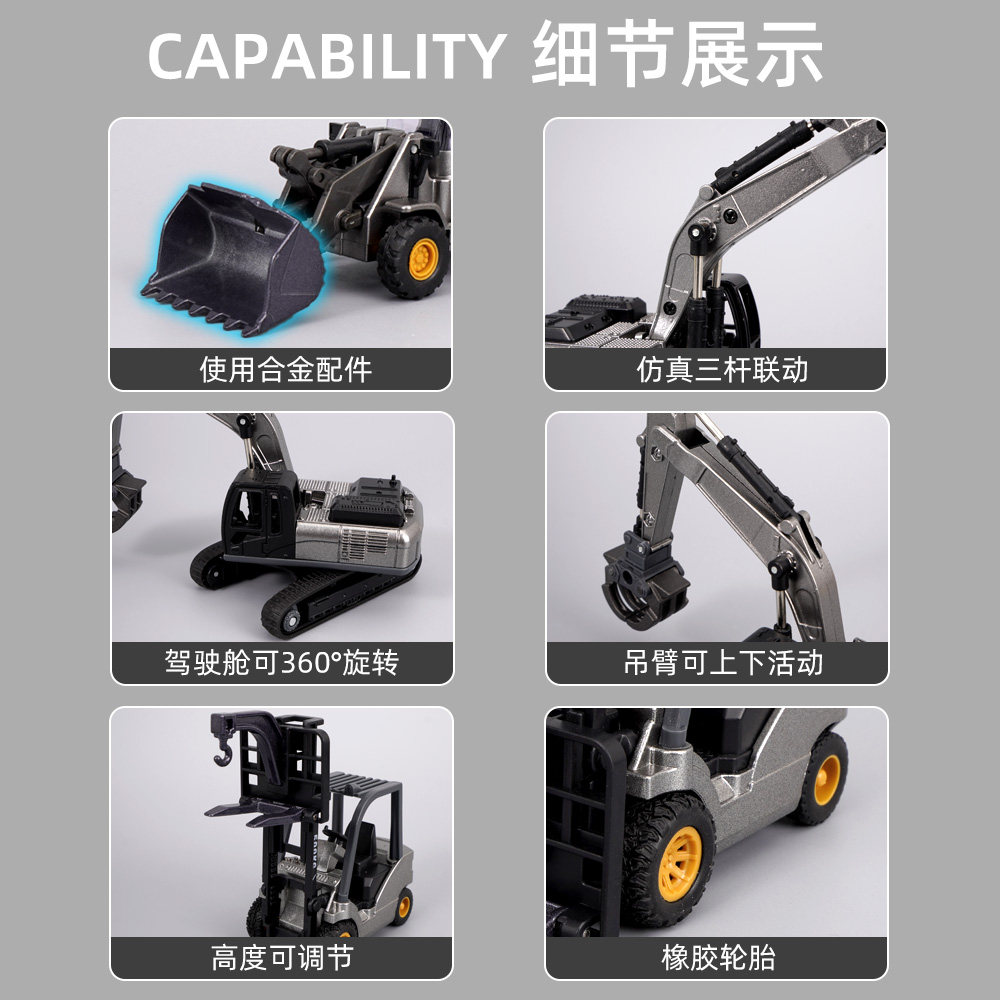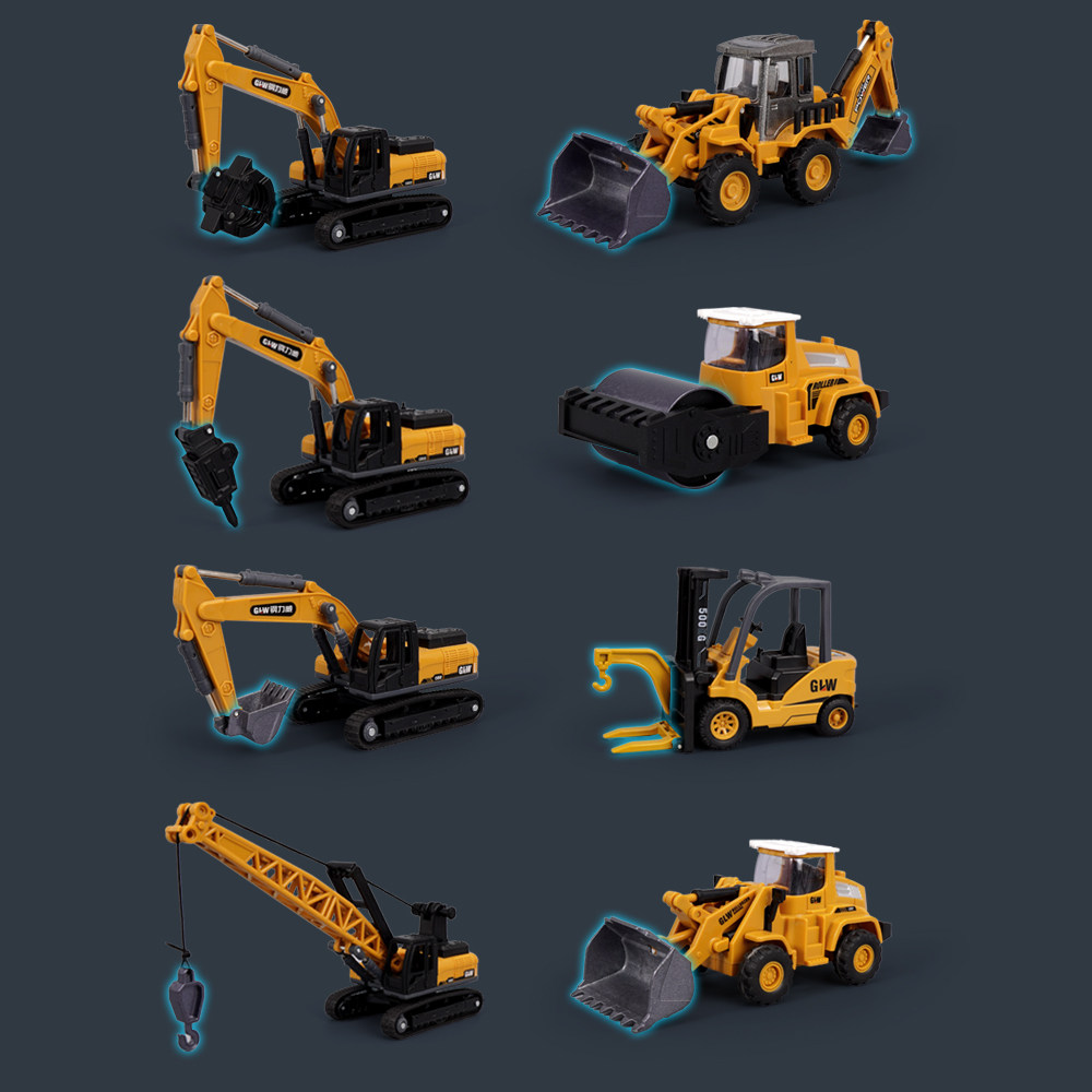 📚 合金工程车玩具套装施工挖掘推土机工地破地压路机抓木机叉车吊车