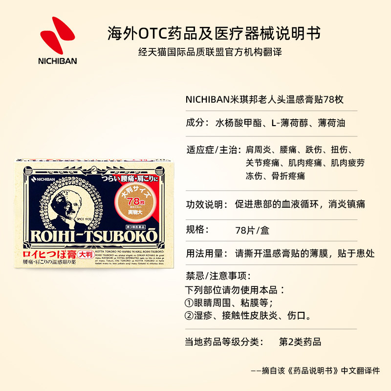 📚 日本直邮老人头膏药贴NICHIBAN米琪邦温感消炎贴止痛贴穴位镇痛贴