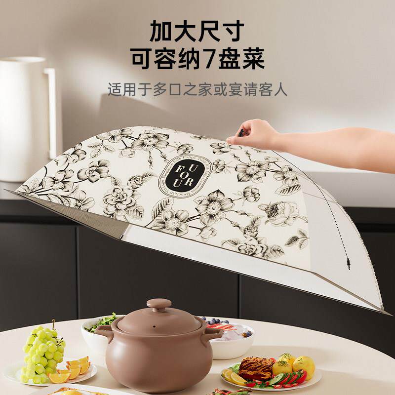 📚 大号盖食物罩新款防尘防虫防蝇新中式饭菜罩折叠餐桌家用遮菜盖伞