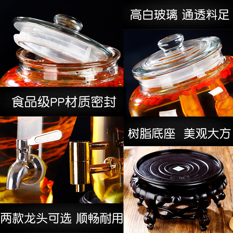 📚 泡酒玻璃瓶带龙头10斤20斤30斤家用泡酒罐密封药酒瓶酿酒坛子密封