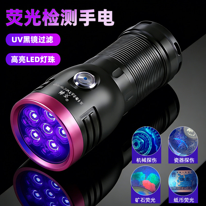 📚 韩炎120W大功率UV紫外线手电365nm紫光灯探伤油污荧光剂检测黑光