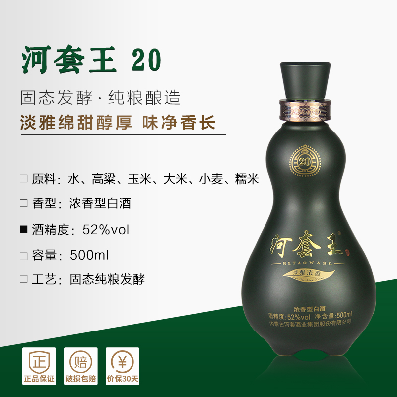 📚 【年货送礼】河套王20浓香型52度白酒500mL*4瓶整箱高档礼盒