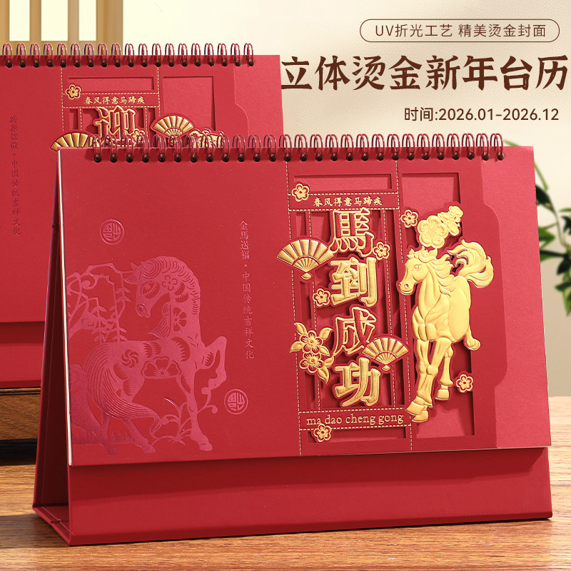 📚 台历2026年中国风红色定制广告企业商务办公桌面摆件创意镂空马年日历定做新款保险人寿月历订制logo印刷日历