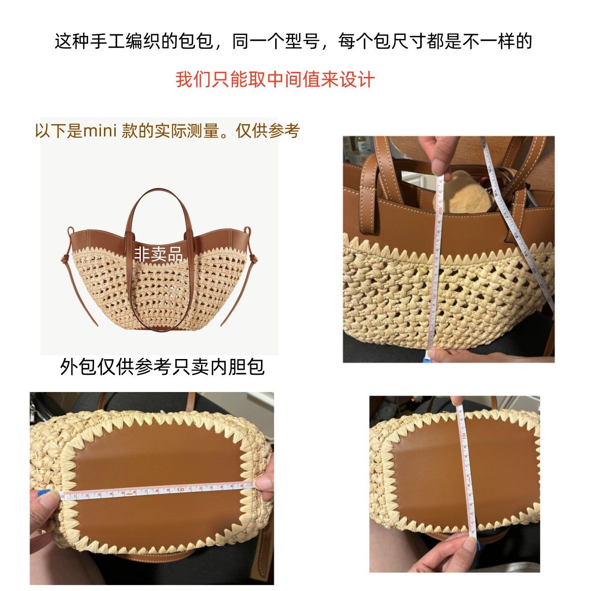 📚 适用polene波灵恩cyme mini拉菲草编织包内胆包中包收纳整理内衬