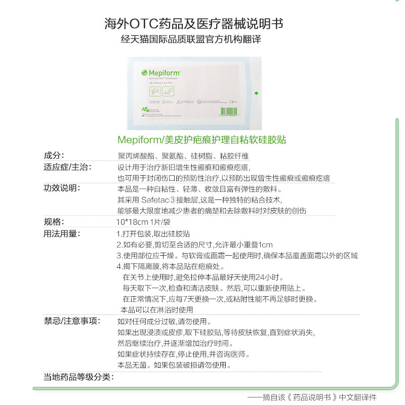 📚 Mepiform/美皮护祛疤贴增生疤痕双眼皮修复硅酮凝胶片4x30cm医用