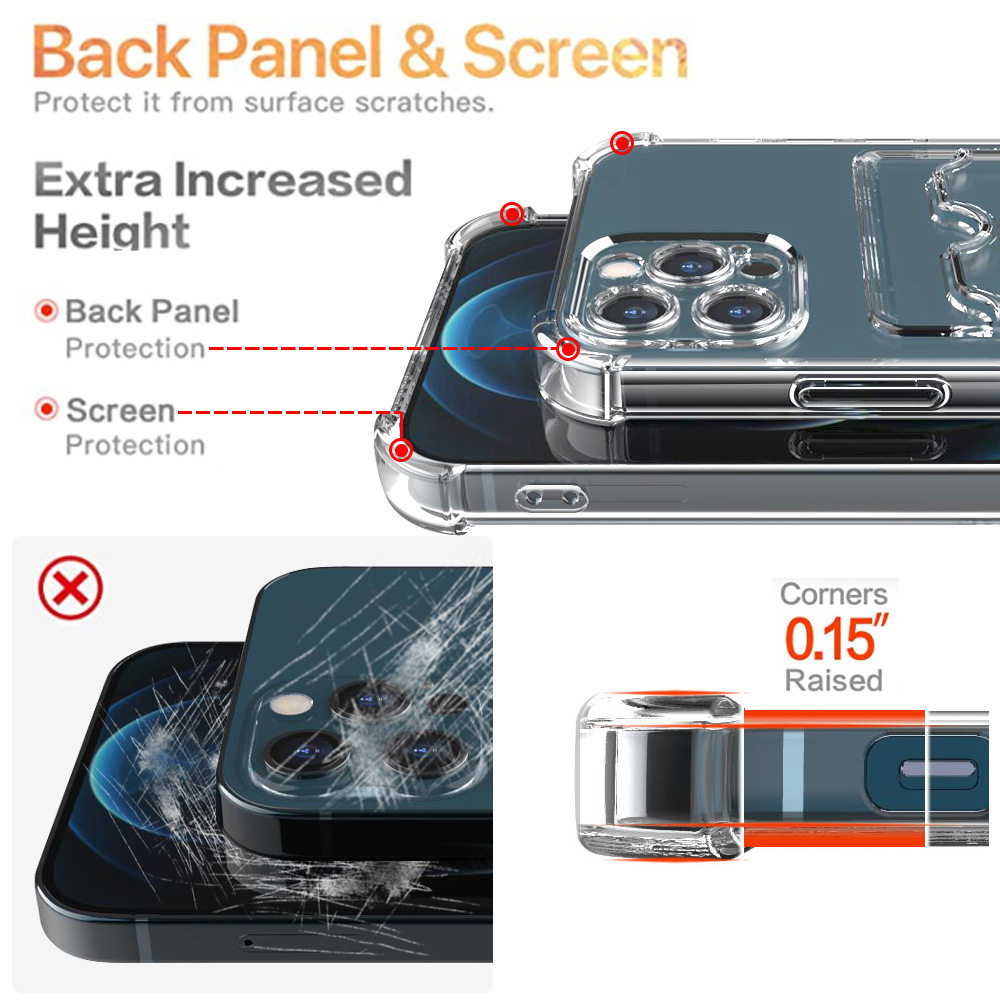 📚 适用于clear shockproof case iphone 15 14 13 12 11 pro max xr XSMAX x 78p 16/15plus cover card holder