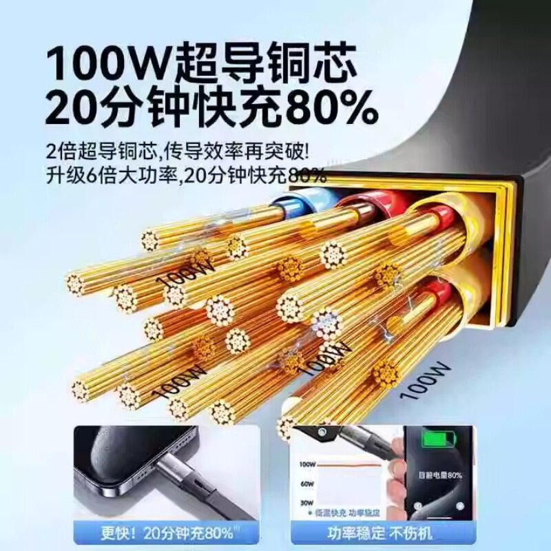 💥种草!三合一数据线100W快充一拖三,TypeC手机车载充电线器头宝,超值优惠到手!