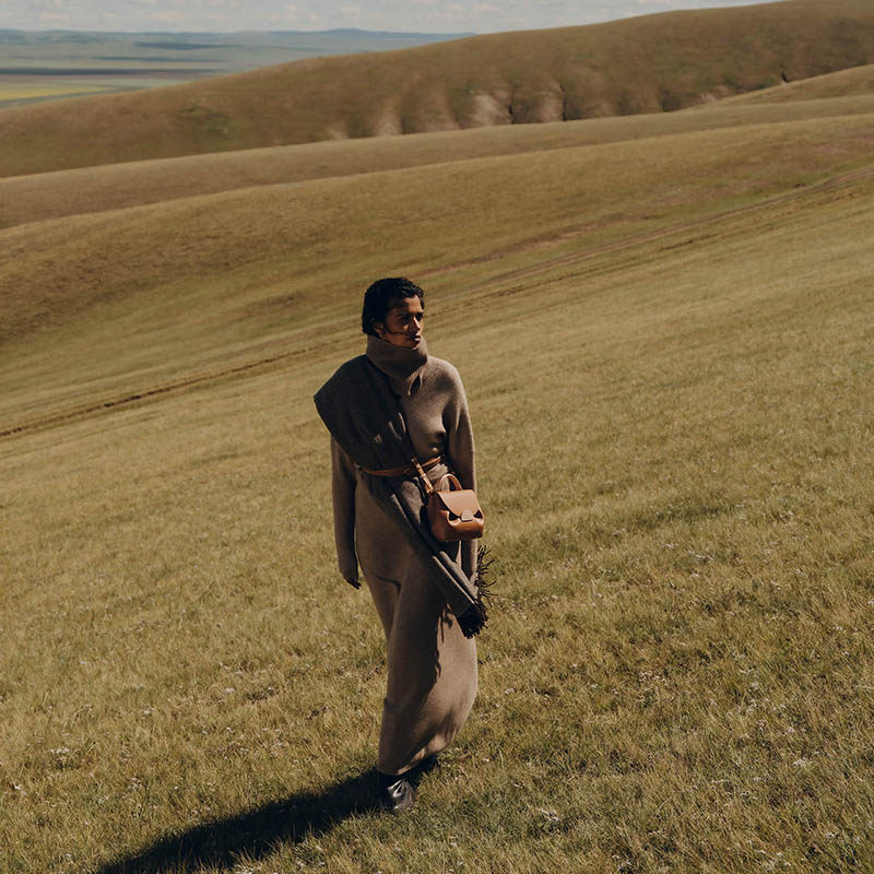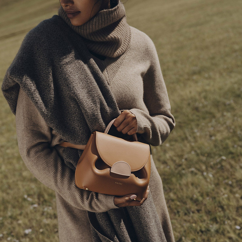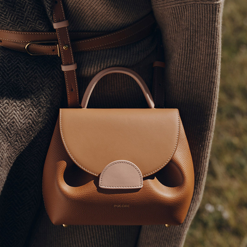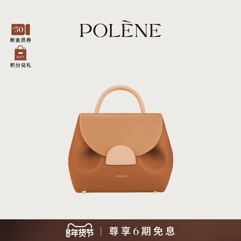 📚 [明星同款]Polene波灵恩Number One Nano驼色牛皮拼接手提斜挎包