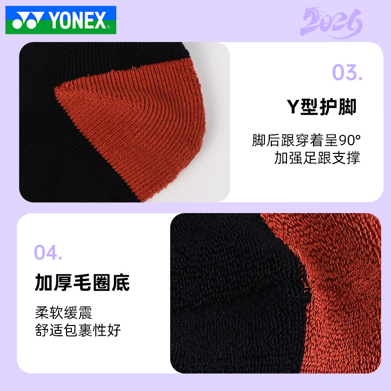 📚 YONEX尤尼克斯羽毛球袜男袜马年专属针织毛巾底运动袜YOBC5132CR