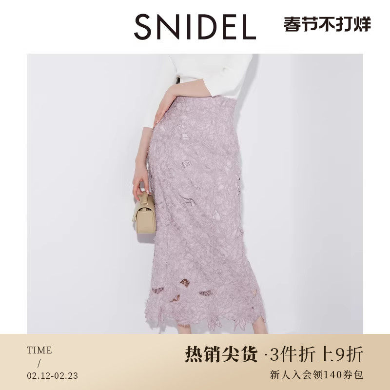 📚 SNIDEL春夏款优雅甜美高腰刺绣镂空蕾丝半身裙SWFS241057