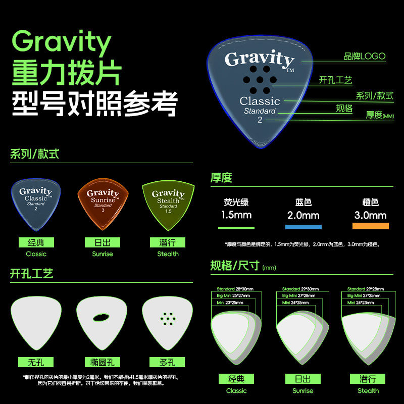 📚 美产Gravity吉他拨片重力电吉他专用扫弦贝斯爵士3防滑速弹片Pick