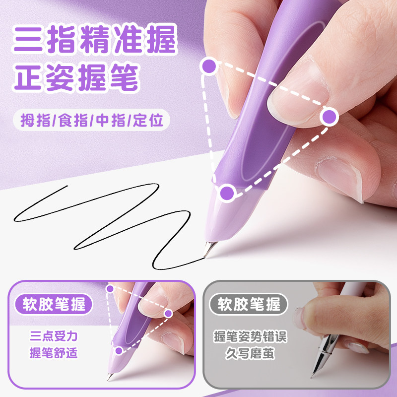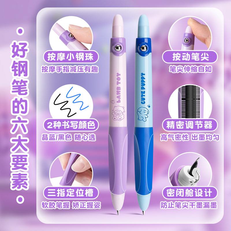 📚 减负钢笔按动式小学生专用三年级可换墨囊矫正握姿写字笔高颜值可爱刷题笔儿童初学者钢笔套装蓝色黑色墨囊