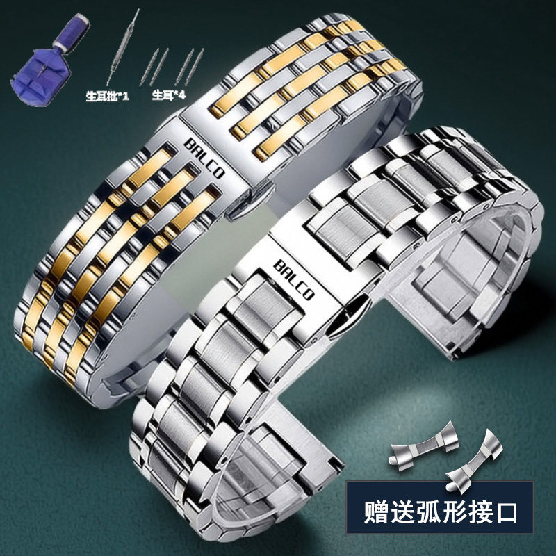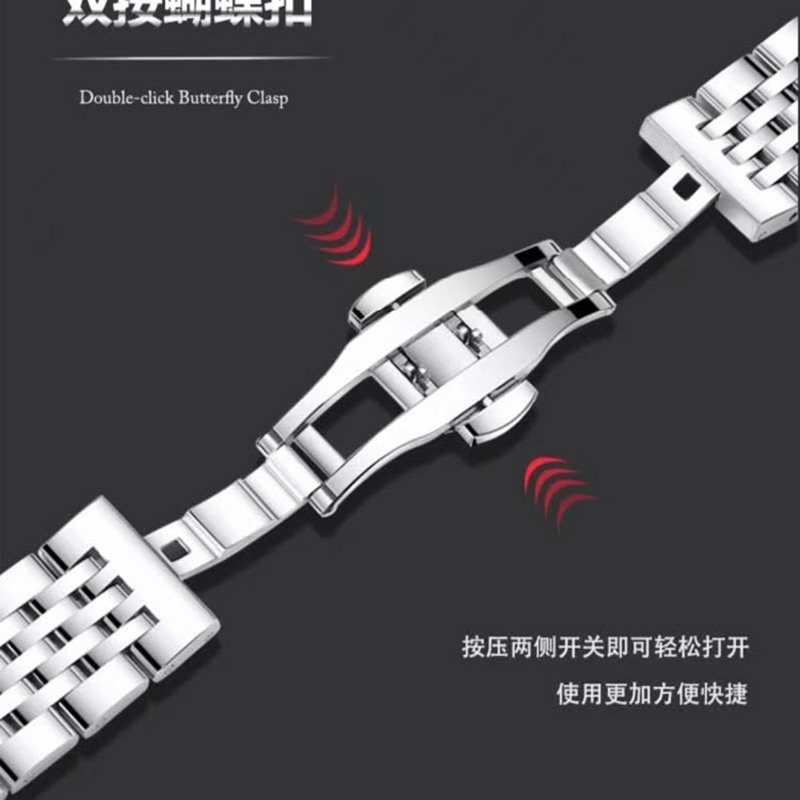 📚 适配拜戈手表带钢带男女款实心不锈钢精钢蝴蝶扣原装表链金属20mm