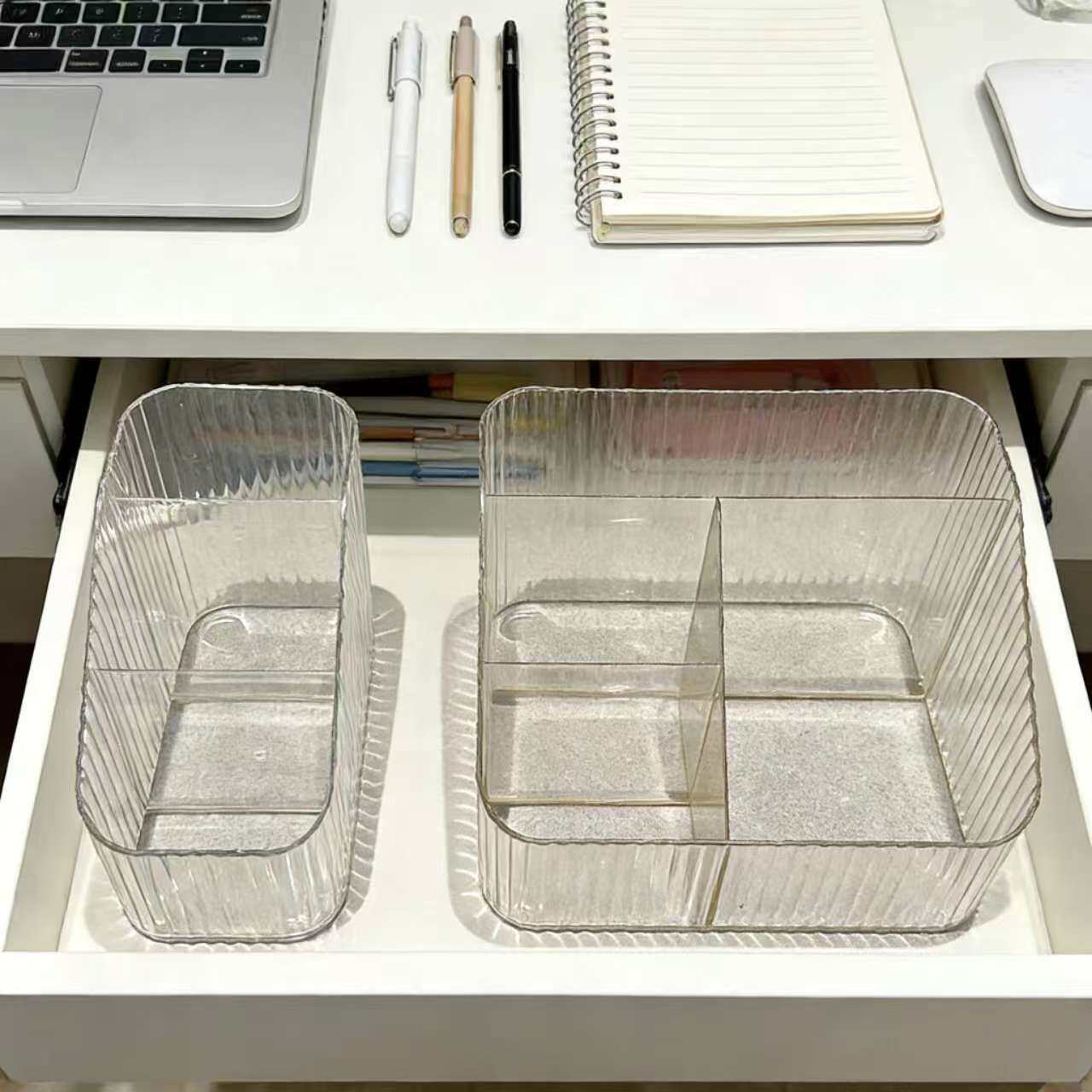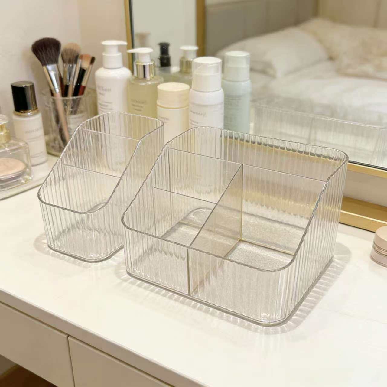 📚 水乳化妆品办公桌收纳透明塑料盒子分格口红盒宿舍化妆刷桶笔筒