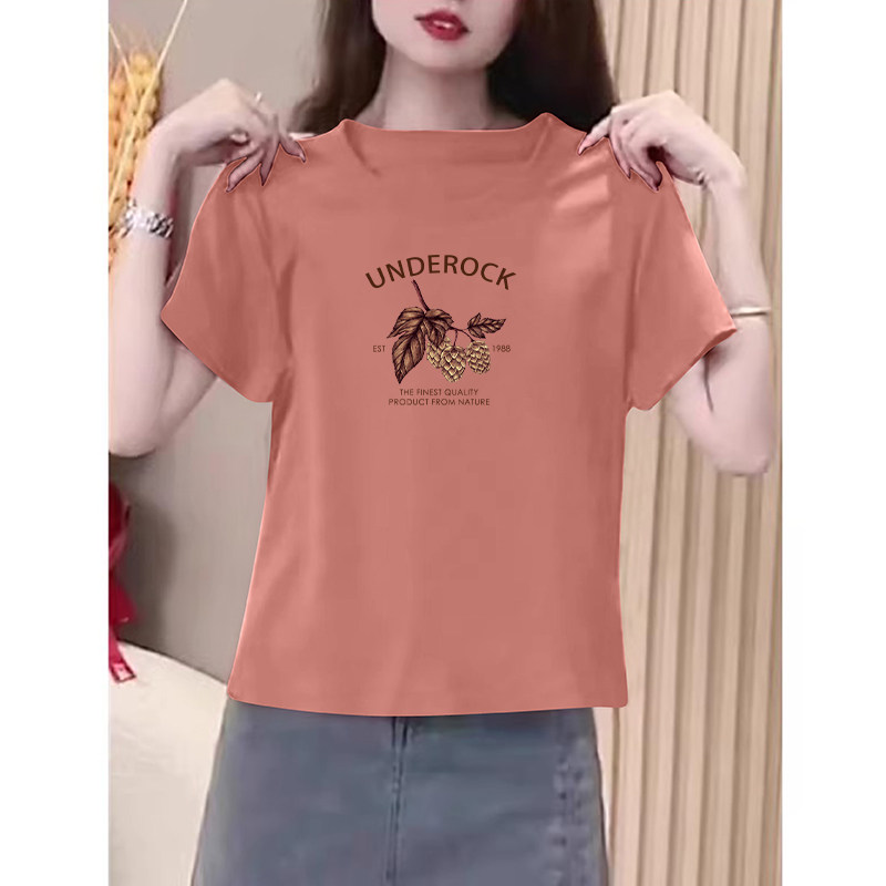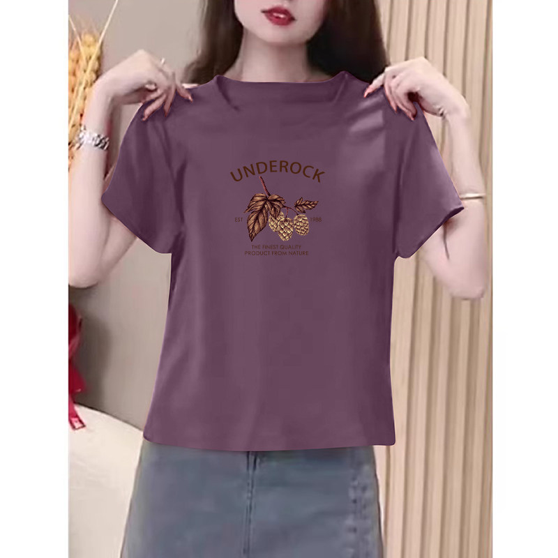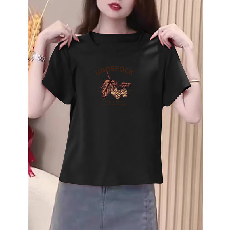 📚 韩版圆领短袖t恤女夏季新款小众修身时尚体恤潮流百搭上衣打底衫